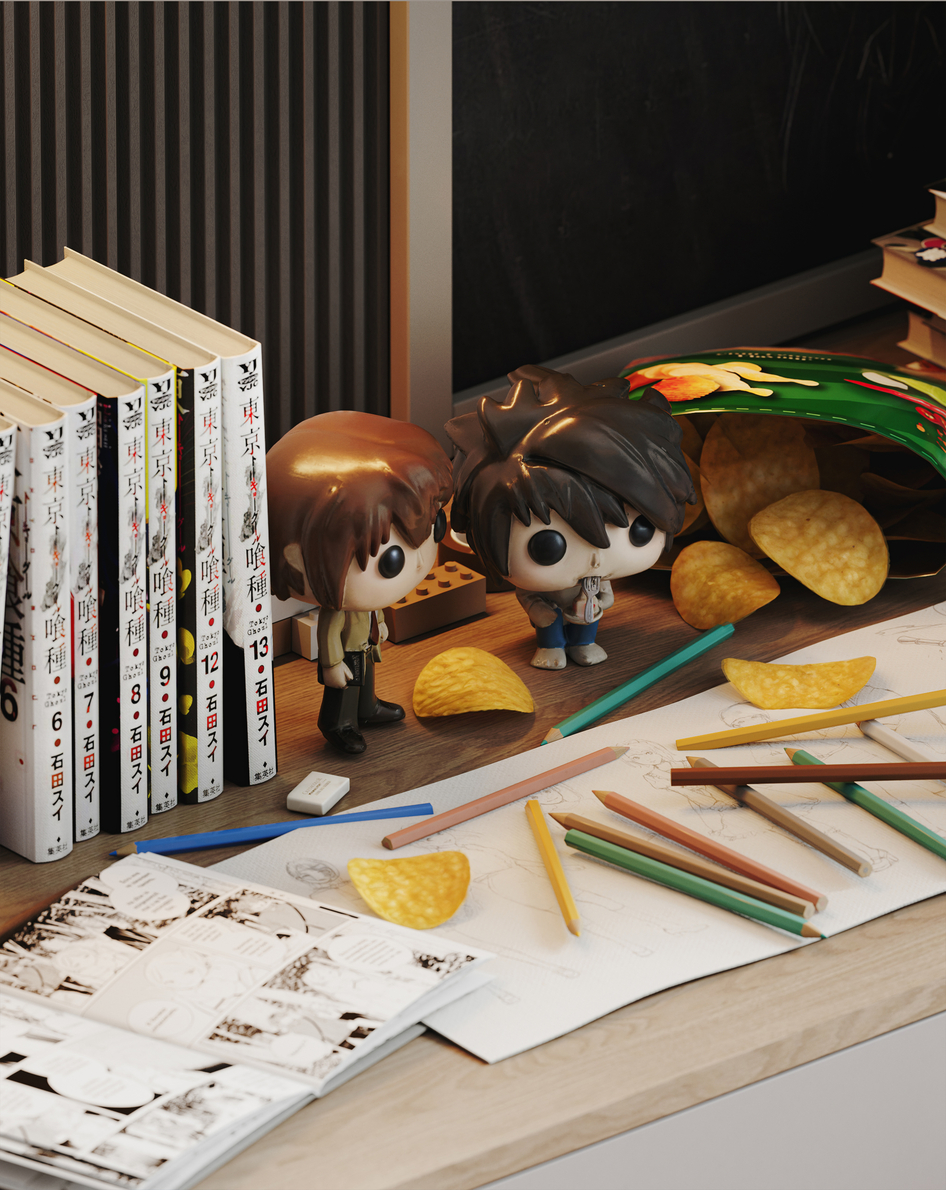 Игрушки, декор на стену и парту в детской для любителей аниме и манги