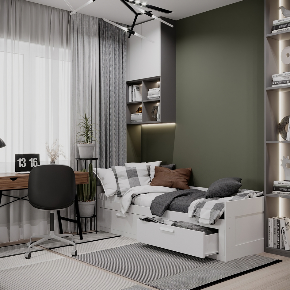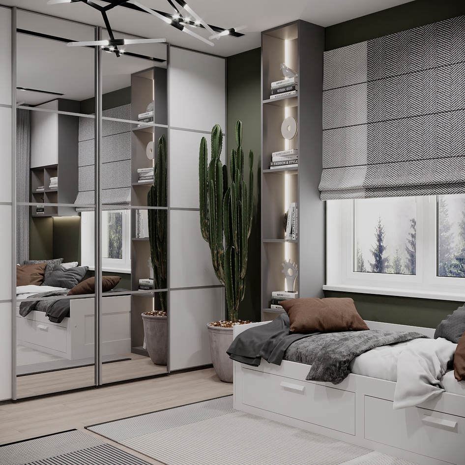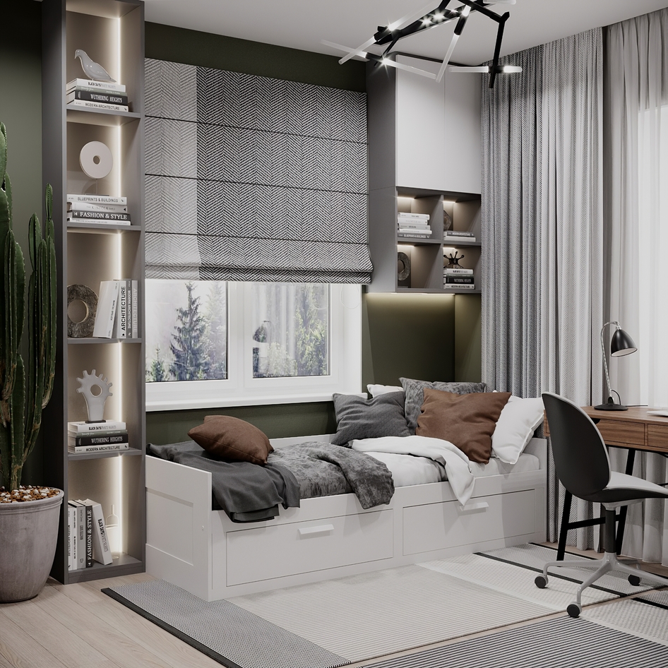 Мне кажется, что если врубить люстру во всю и пустить активный свет из окна получается каша. И где там какой свет не понятно) Заказчик есть заказчик, но сюда же вы не для заказчика выкладывали))