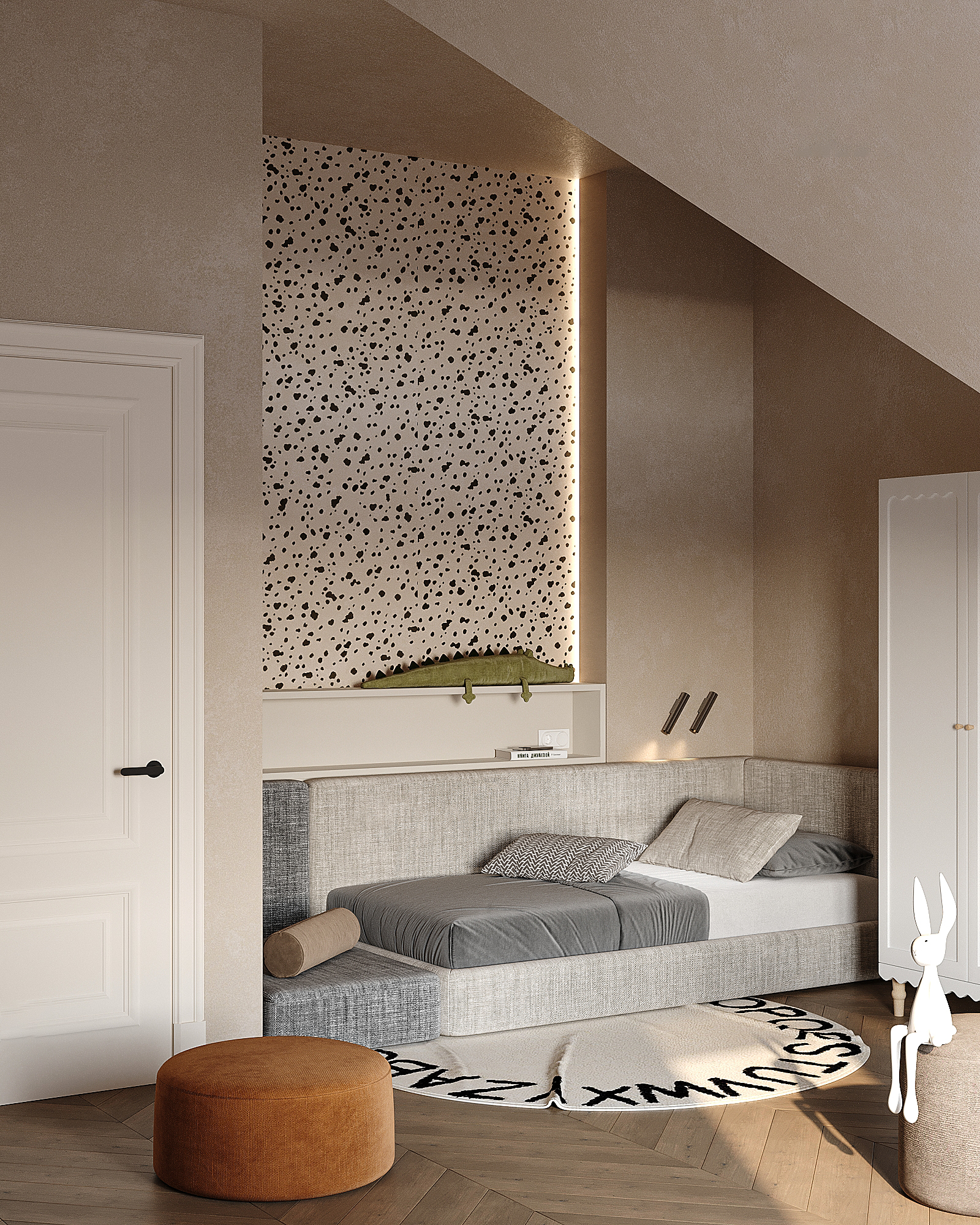Красивая детская! Хорошая проработка материала. На 9 кадре немного геометрия поломалась от boolean видимо)