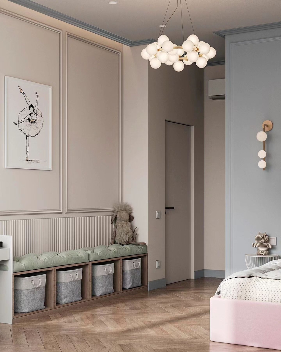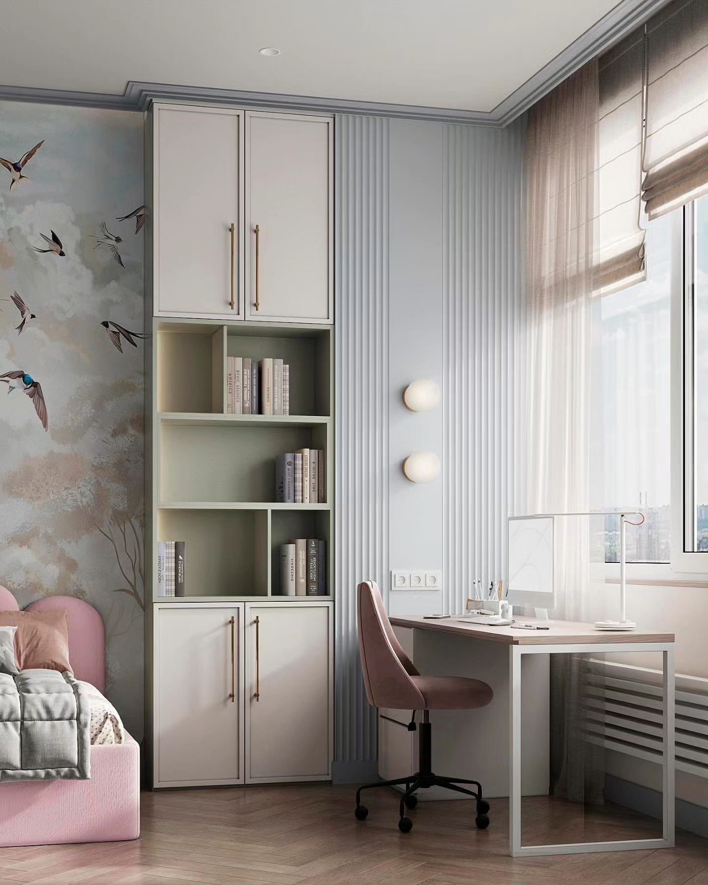 В целом очень уютно, цветовая гамма и материалы хорошо проработаны, но вот всякие мелочи немного портят впечатление, возле кресла компьютерного что то летает на первой картинке, светильник чуть подлетел над столом, текстуру дерева на торцах где лавочка с корзинами развернуть бы надо, розетка и выключатель тоже вроде от стены отошли