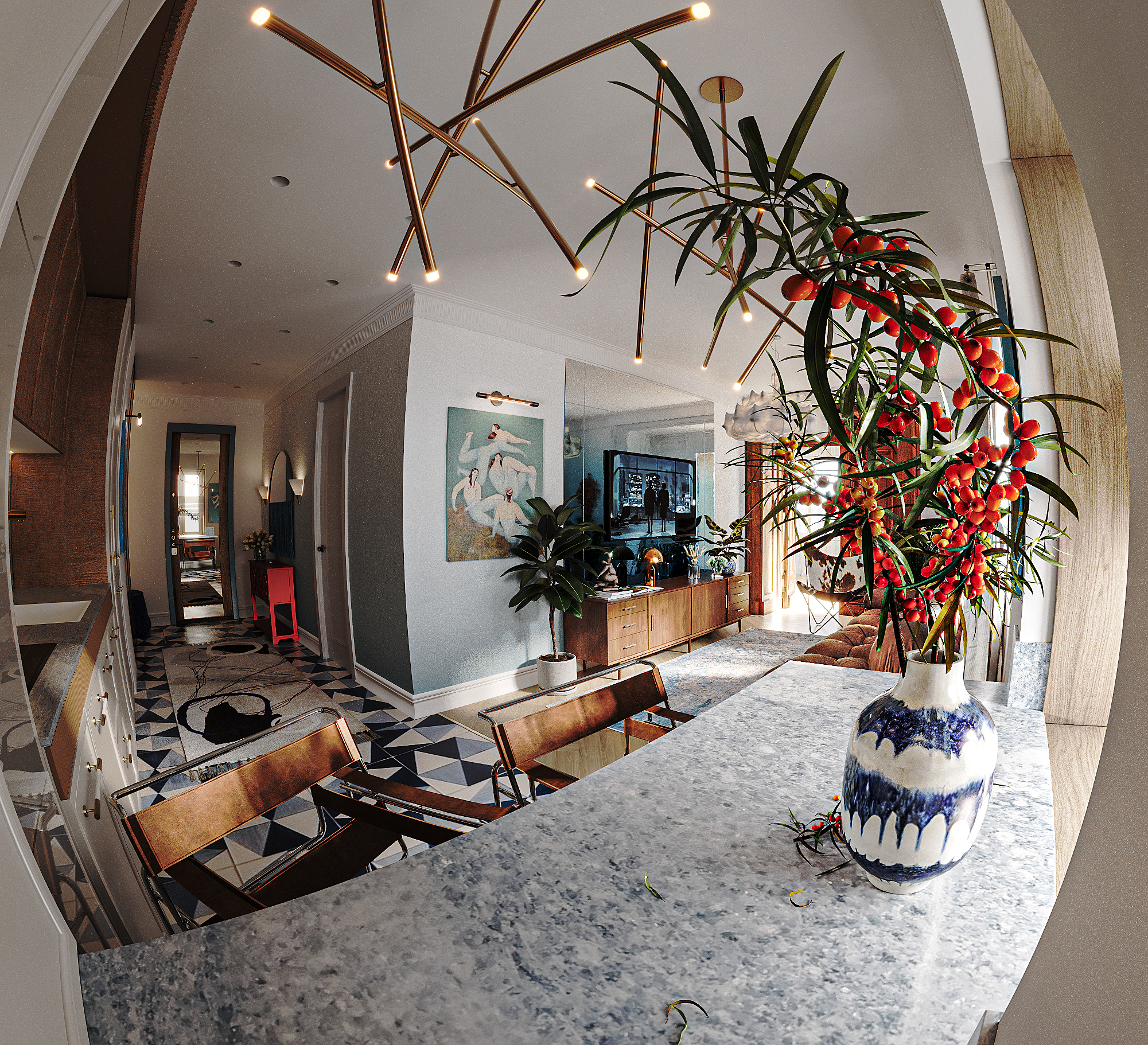 большинство интерьеров похожи друг на друга и ракурсы стандартные, смотреть не интересно)) а тут автор круто преподнес, под слоем перчика)) однозначно работа заслуживает внимания и высокой оценки)