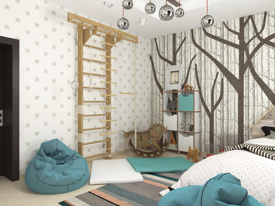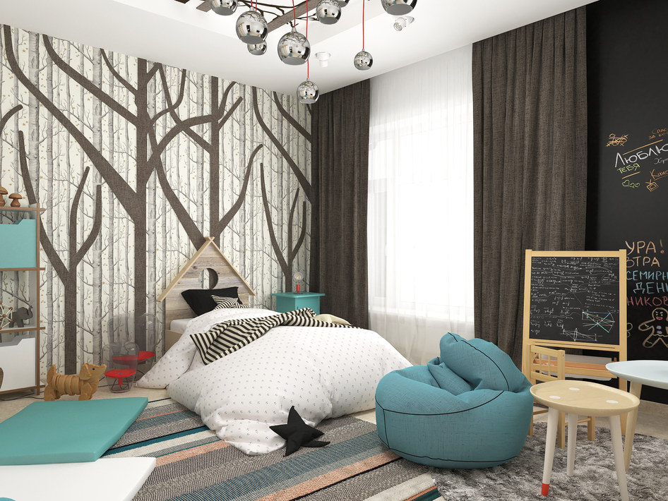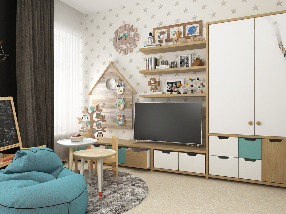 По своему наполнению комната вроде для дошкольника, а глядя на доску и книги, вспомнился анекдот :)