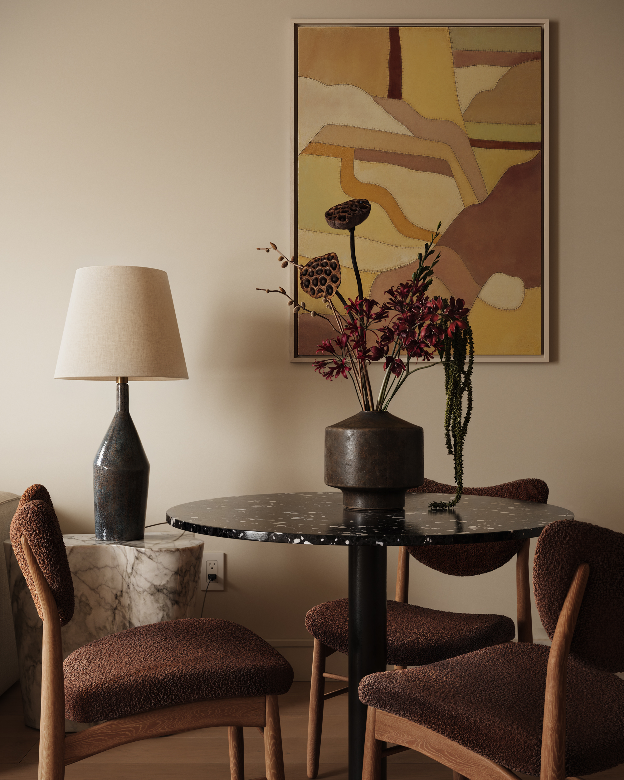 This interior visualization is inspired by the calm, earthy aesthetics and sculptural minimalism characteristic of Monomid Studio’s projects. Natural textures, muted tones, and soft geometric forms create a warm and balanced living space. It is ideal for showcasing modern organic design in residential interiors.