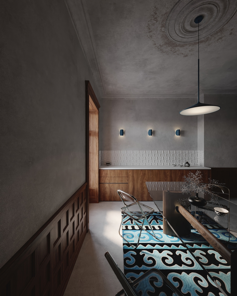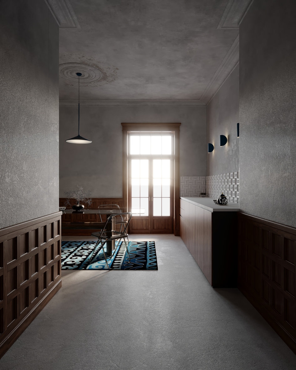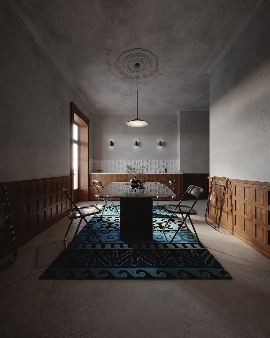 Ох какой интерьер хороший!... Только ковер немного не отсюда. Сам рисунок простоват для этого интерьера. В плане линий, деталей. Может. если бы у него рельеф был более мелкий (много мелких деталей), то было бы ближе.