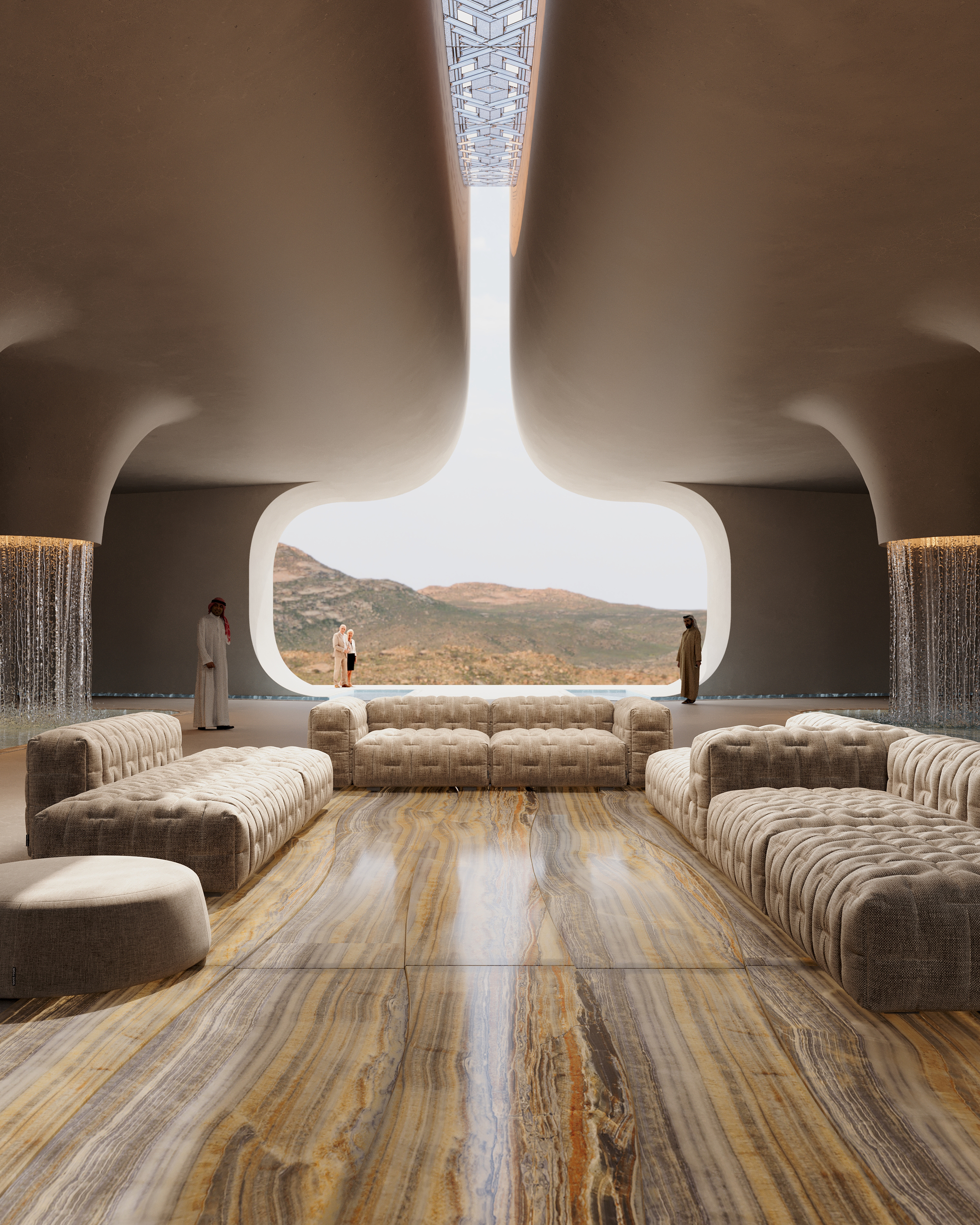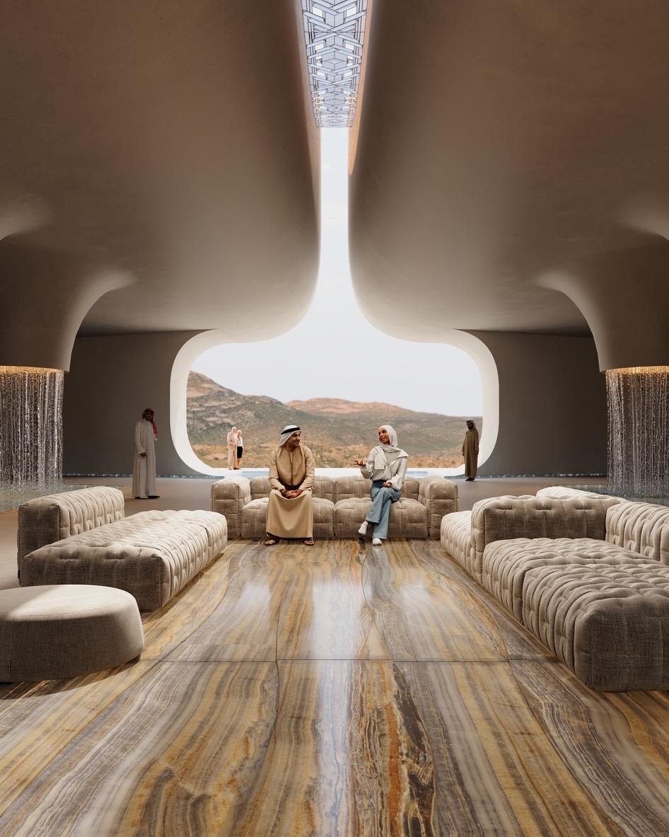 Восточная страна, выставочный павильон, в центре которого расположен диван BOCA FOO-FIVE