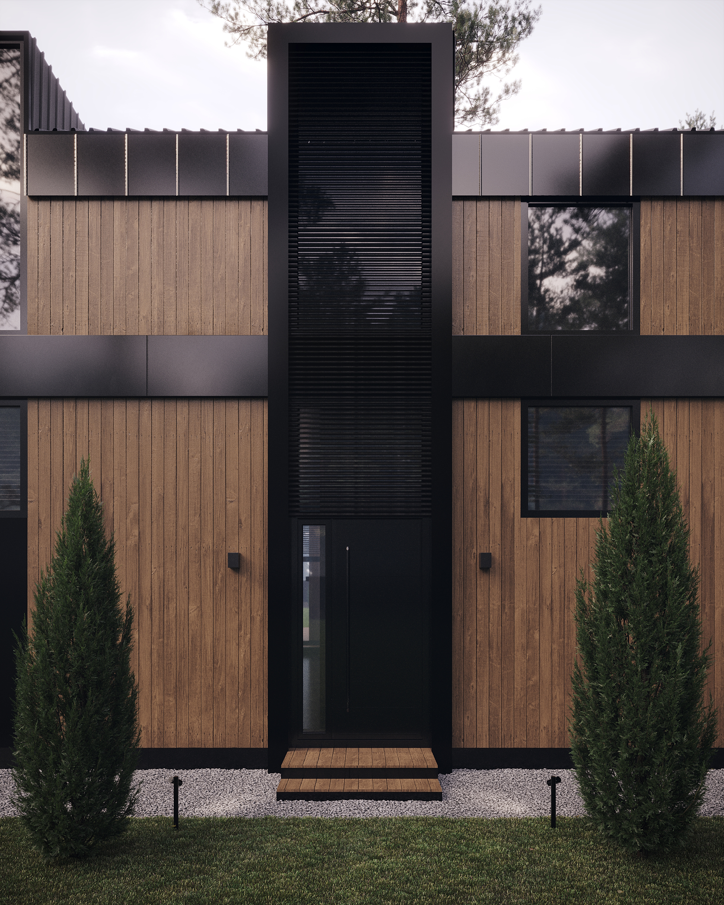 Что-то теней почти нет. 1 кадр - тротуарная плитка точно должна быть такая блестящая? И сквозь нее местами трава прорастает. 5 кадр - то ли с туманом, то ли с глоу перебор. Черную отделку на доме я бы сделала более матовой, а то мне кажется этот блеск дешевит. Туи мне кажется выбиваются по цвету. Ну а так очень даже симпатично. Хотела бы здесь жить.
