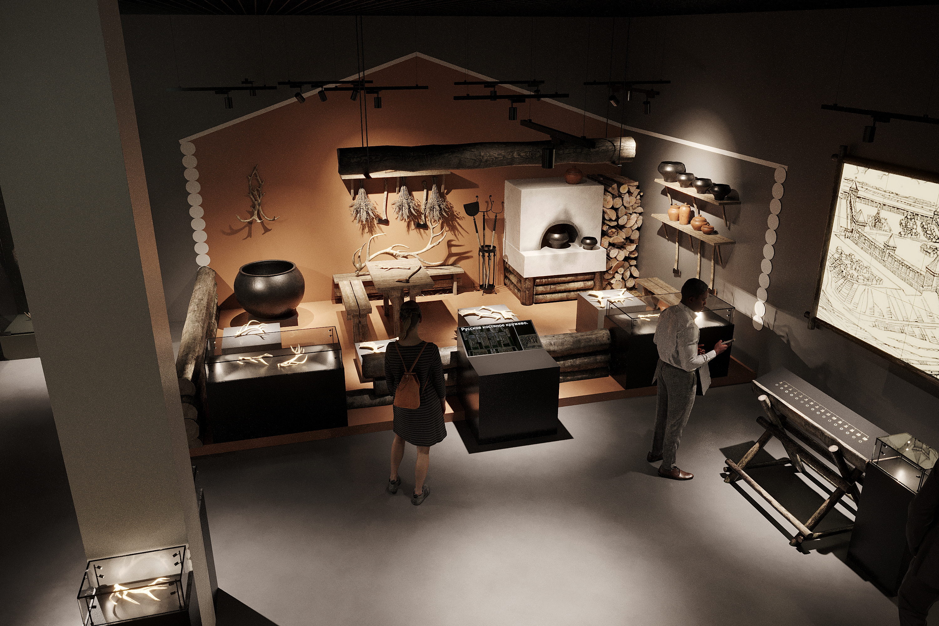 Дизайн и 3д-визуализация концепции выставки старой Рязани