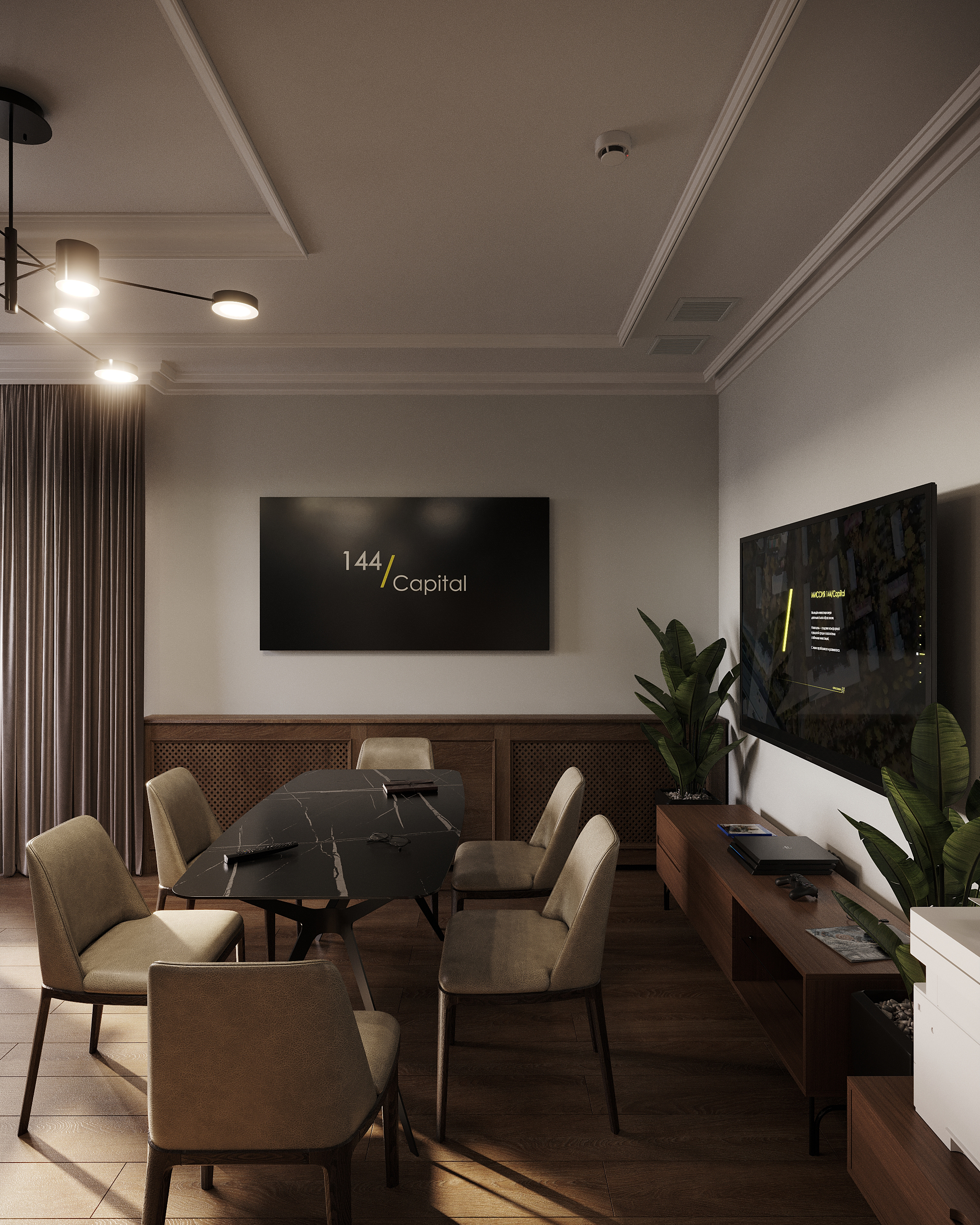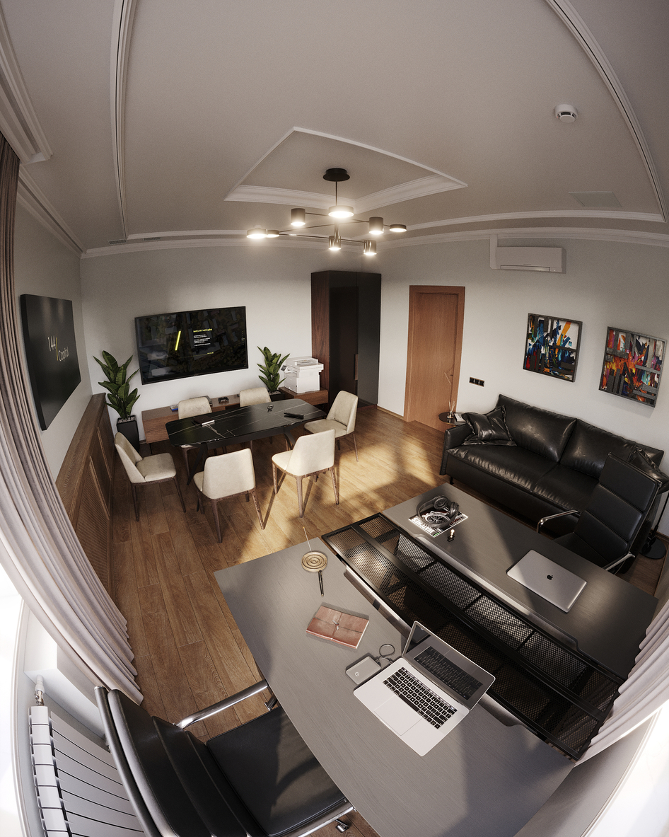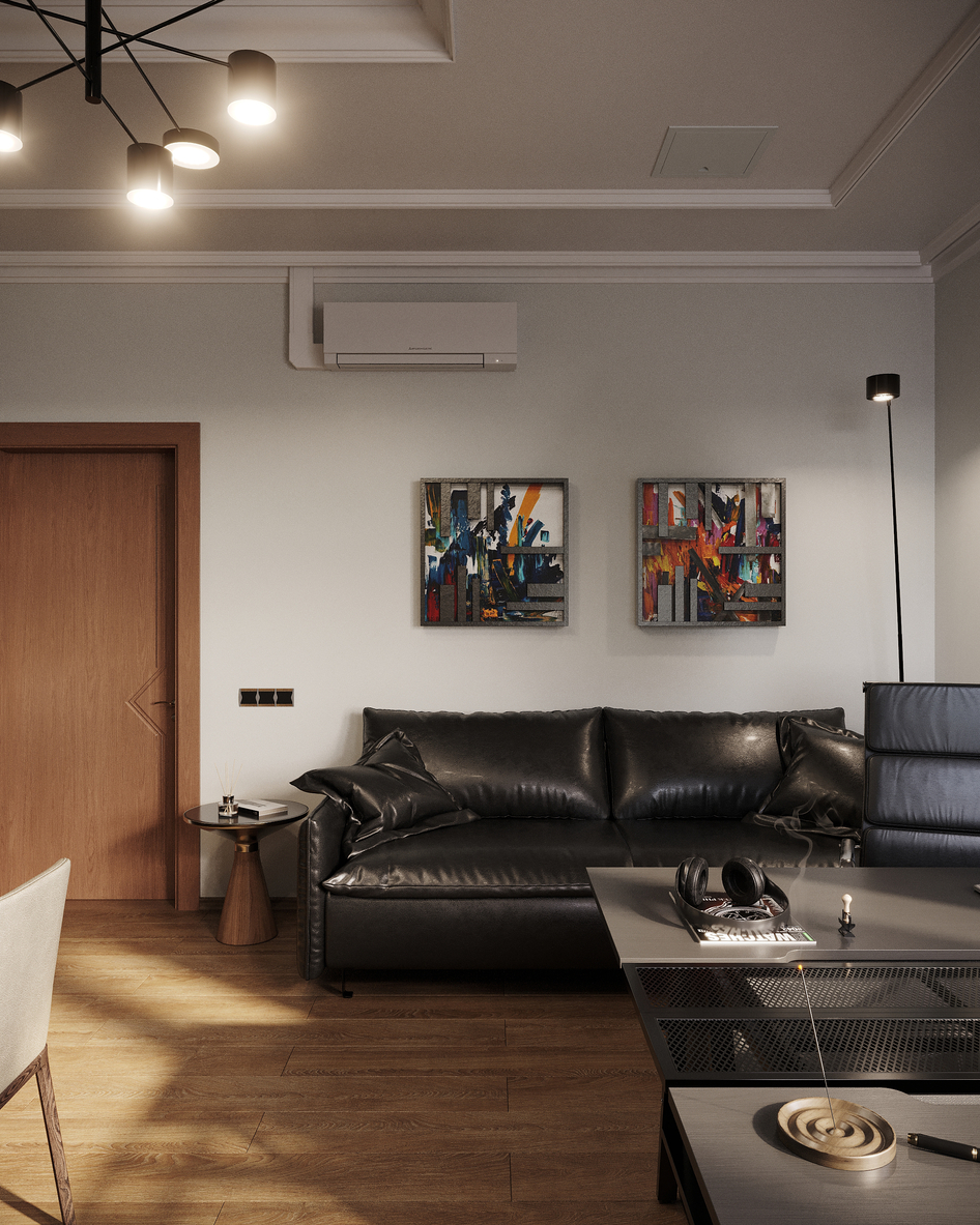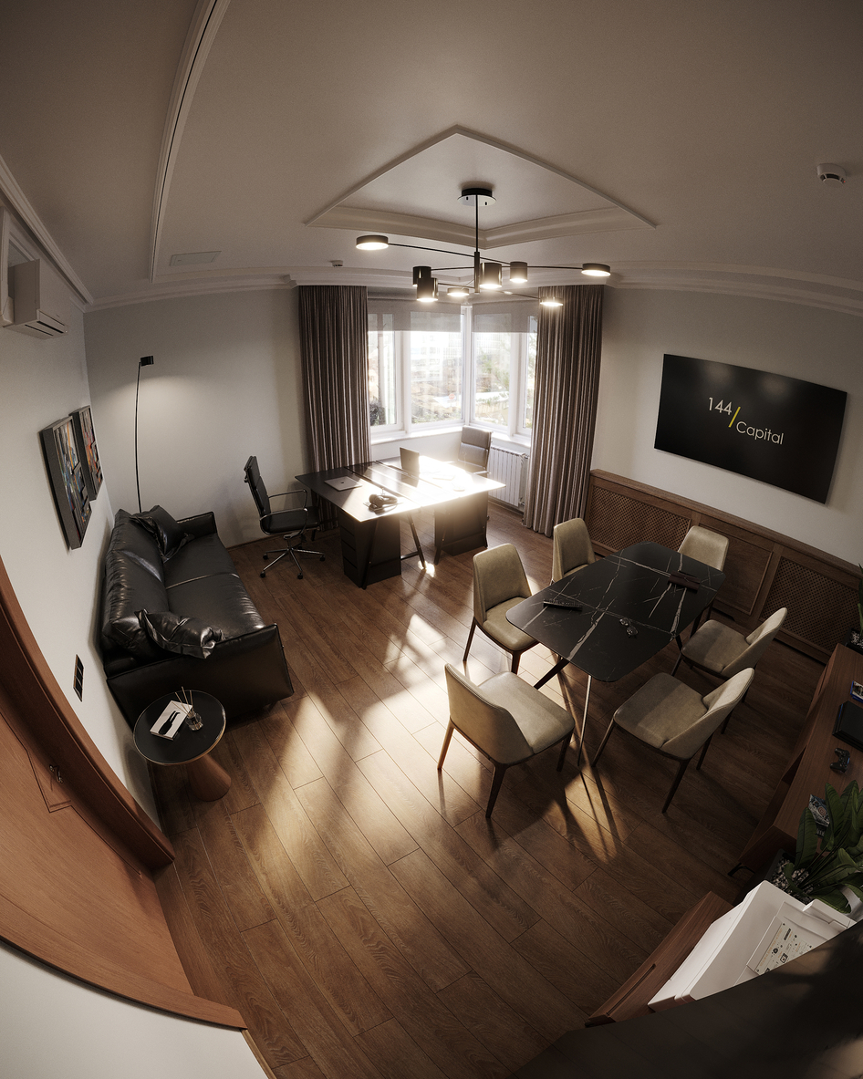Нет, потому что там ремонт был уже готовый, надо было его изобразить и придумать все на основе того, что есть. Потолки менять нельзя. Но там помещение небольшое, света и так достаточно.