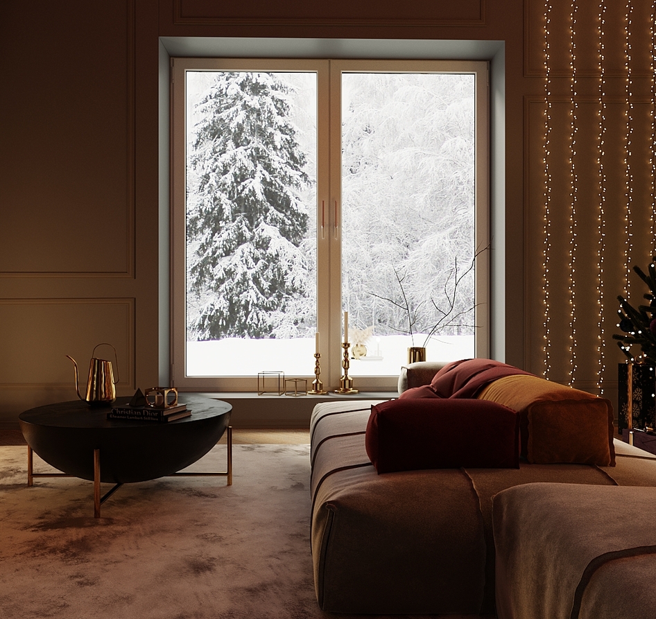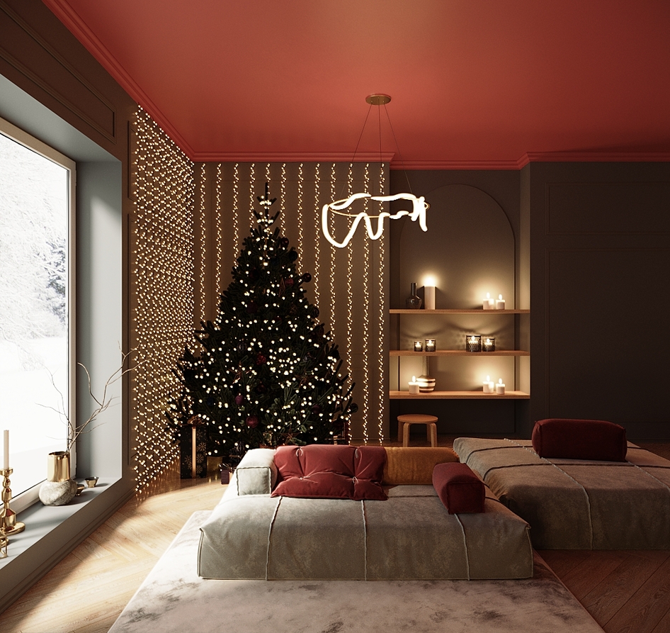 Дизайн и визуализации гостиной в преддверии праздников