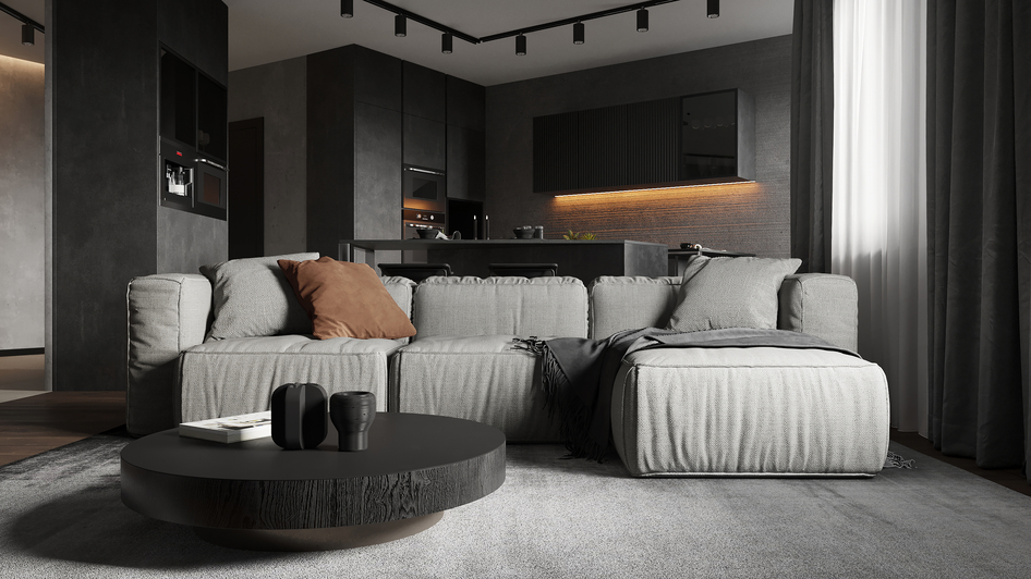 Дизайн и визуализация кухни-гостиной.