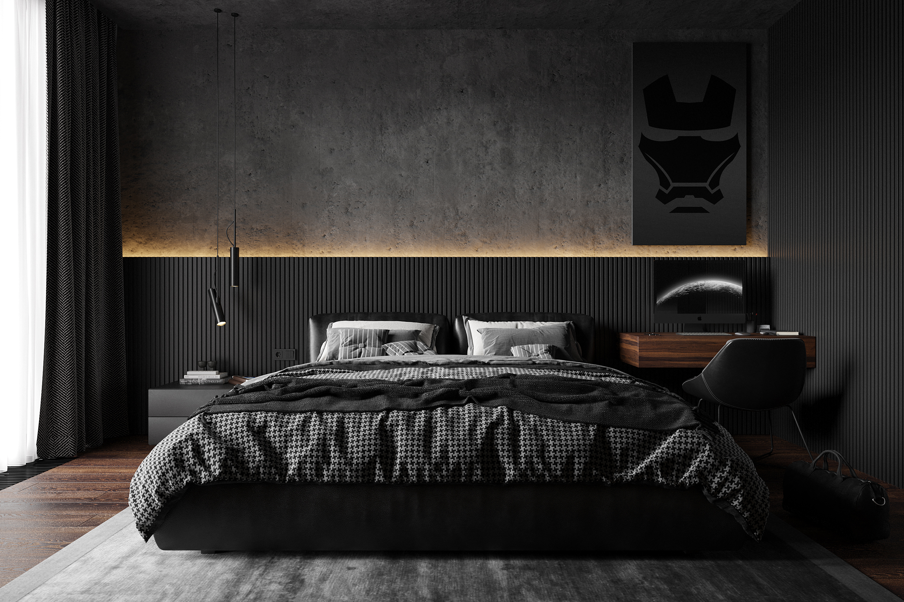Дизайн и визуализация спальни "Dark room"