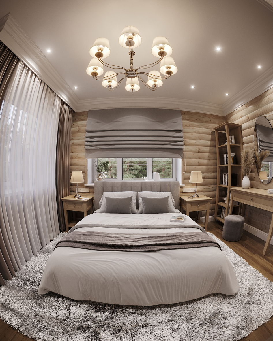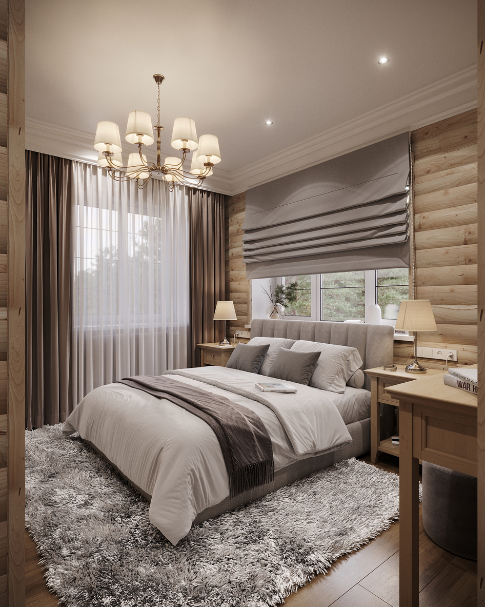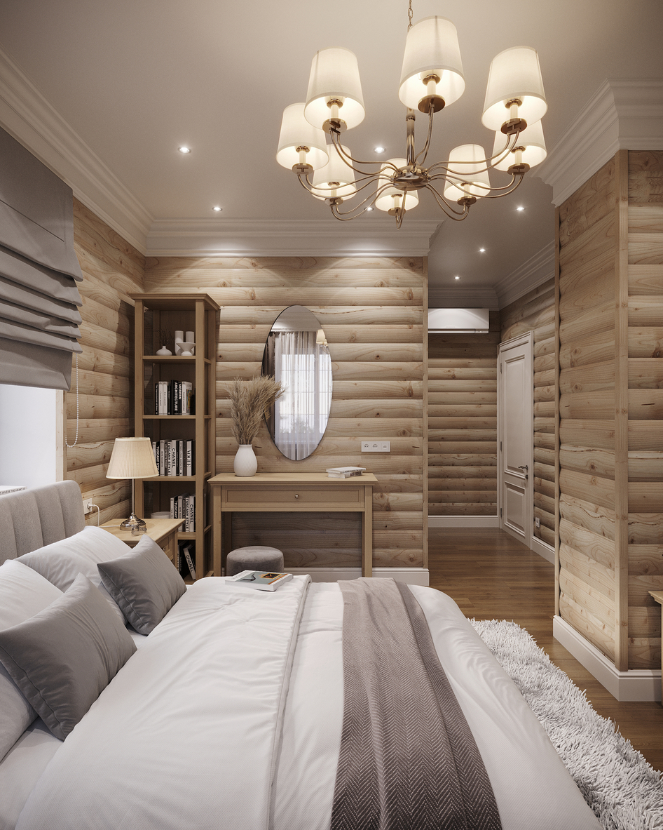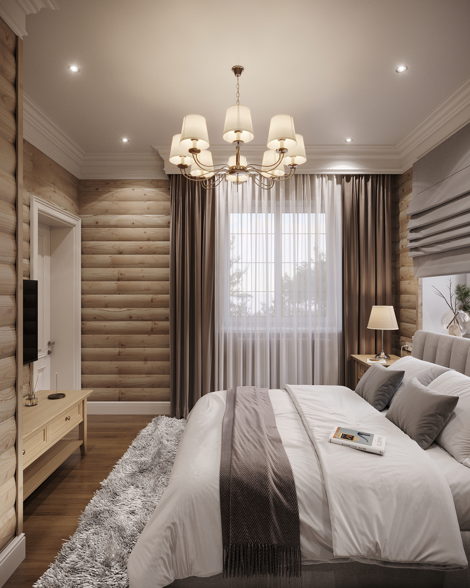 Круто, но 1 момент не понятен - домик явно в красивой лесистой местности, а кровать лицом в стенку - чтоб в ящик пялиться вместо красивых елочек. А карнизы а доме из бруса не отстрелят от стены? Такие дома довольно сильно "дышат".