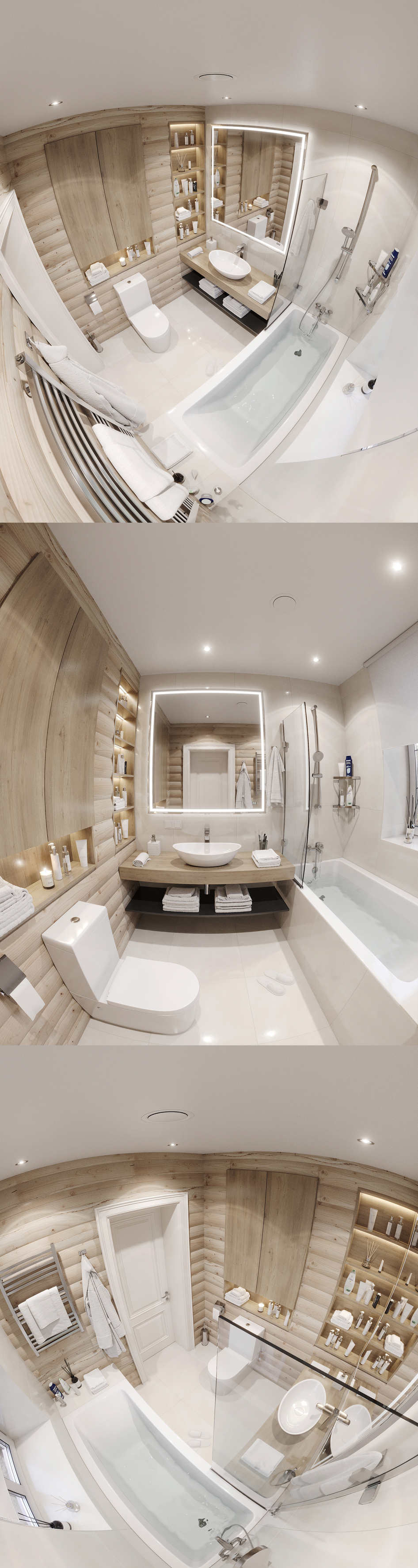Дизайн и визуализация спальни с санузлом в загородном доме.
