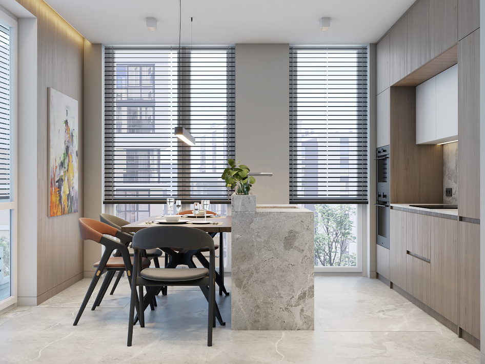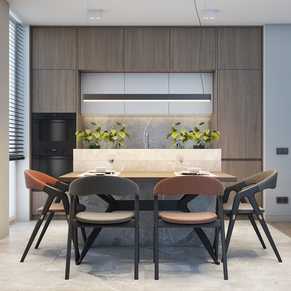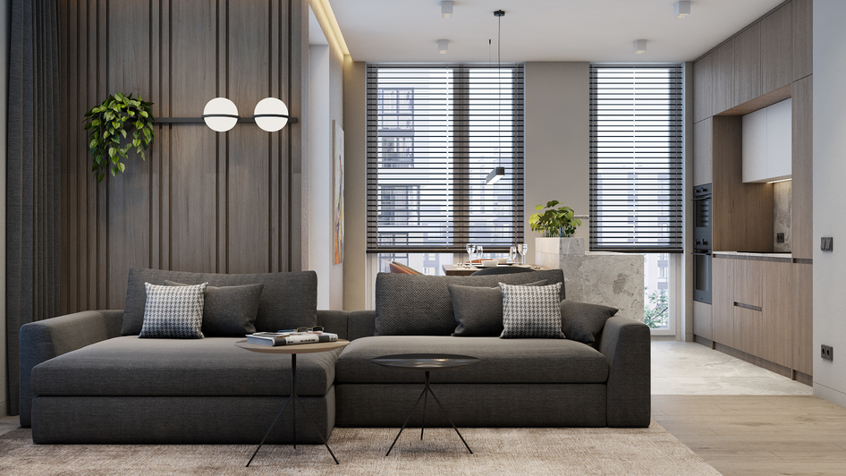 Дизайн гостиной и кухни. Работала выполнена в SketchUp + Vray