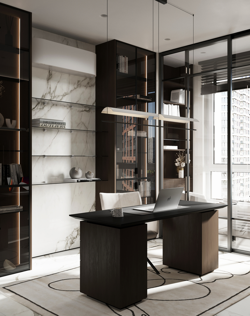 Grey minimalistic decor for a workplace with a set of Apple equipment