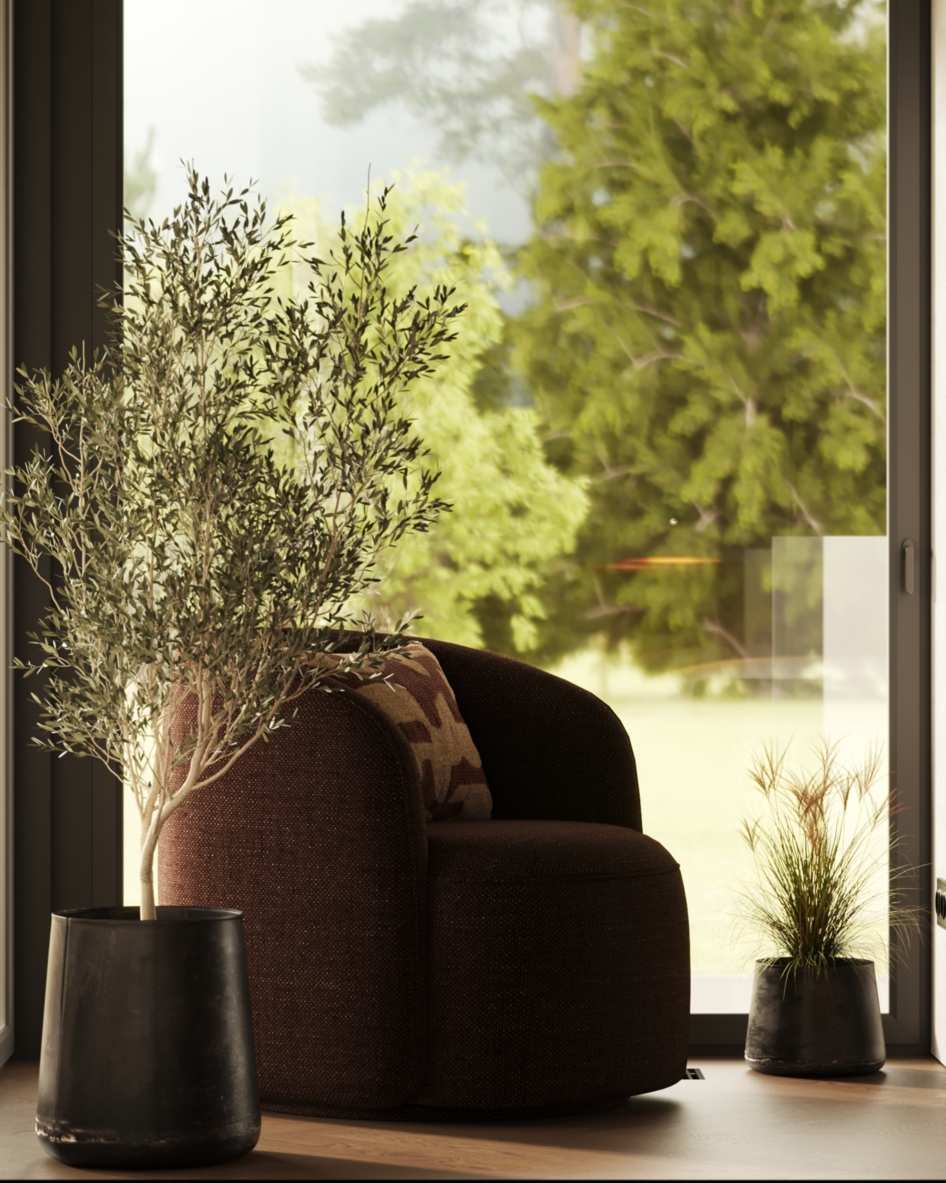 Коллекция растений в черных металлических горшках с Олива, фикус Лирата, дерево. Набор 1029.