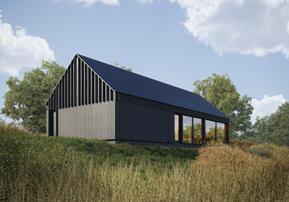 Дом из дерева, с резьбой, а черный, для контраста, задумка автора проекта)