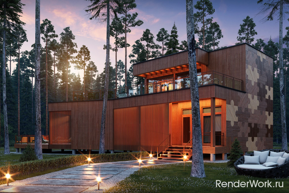 Архитектура и виз очень понравились! Единственное, расстояние между досками декоративного ограждения на террасе, сделать бы побольше. По всей видимости доска размером 200х40 и зазор 40. 80 мм было бы лучше, но это сугубо моё личное мнение. Всё остальное на высоте! Мозаика на стене очень понравилась,как идея - супер! +5