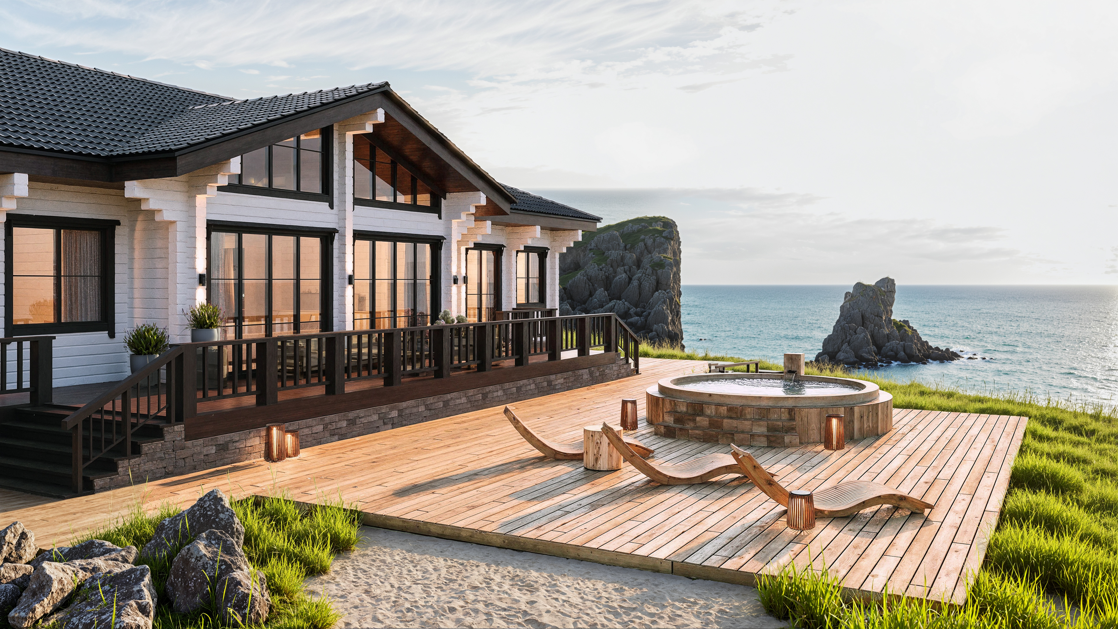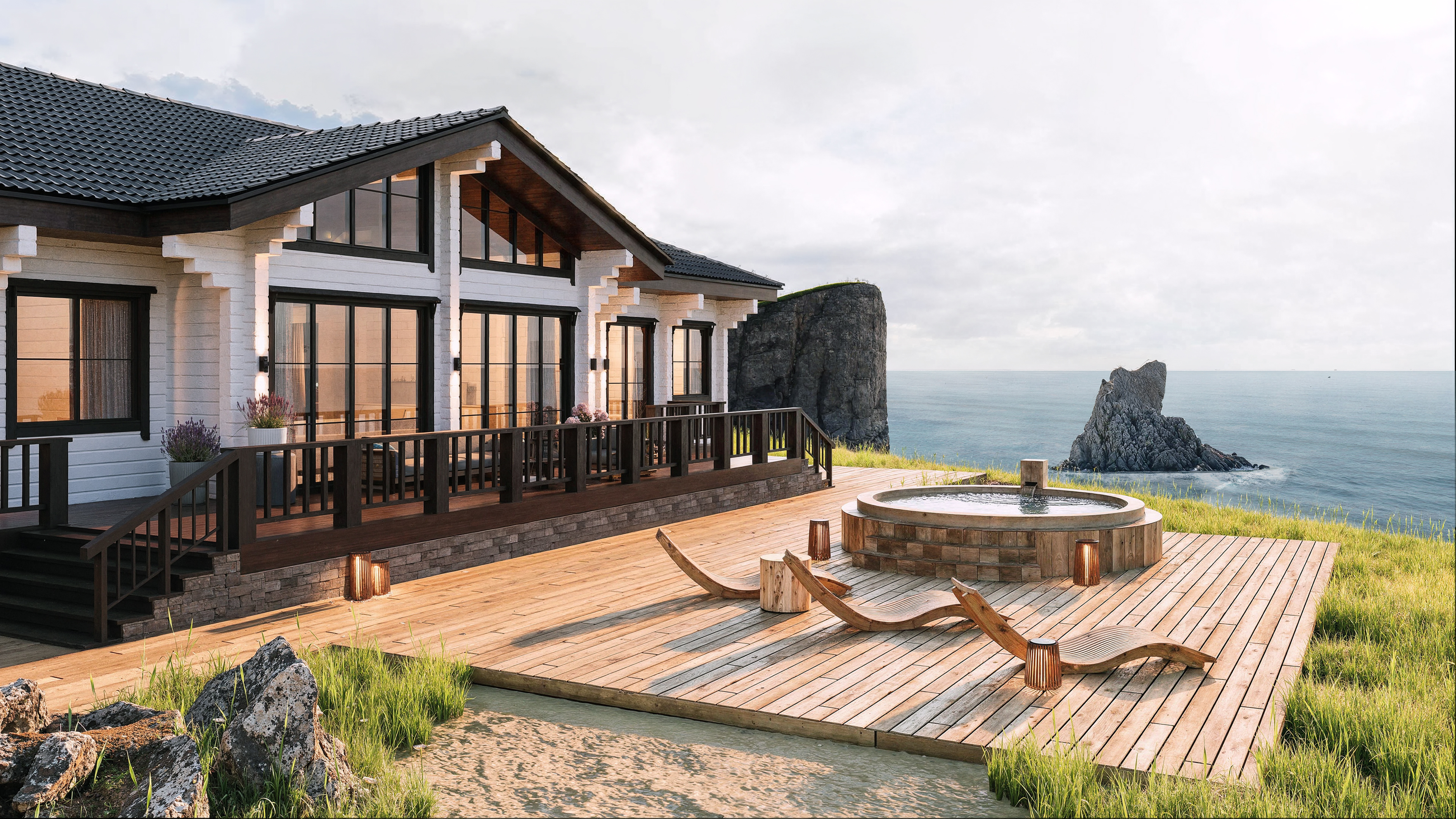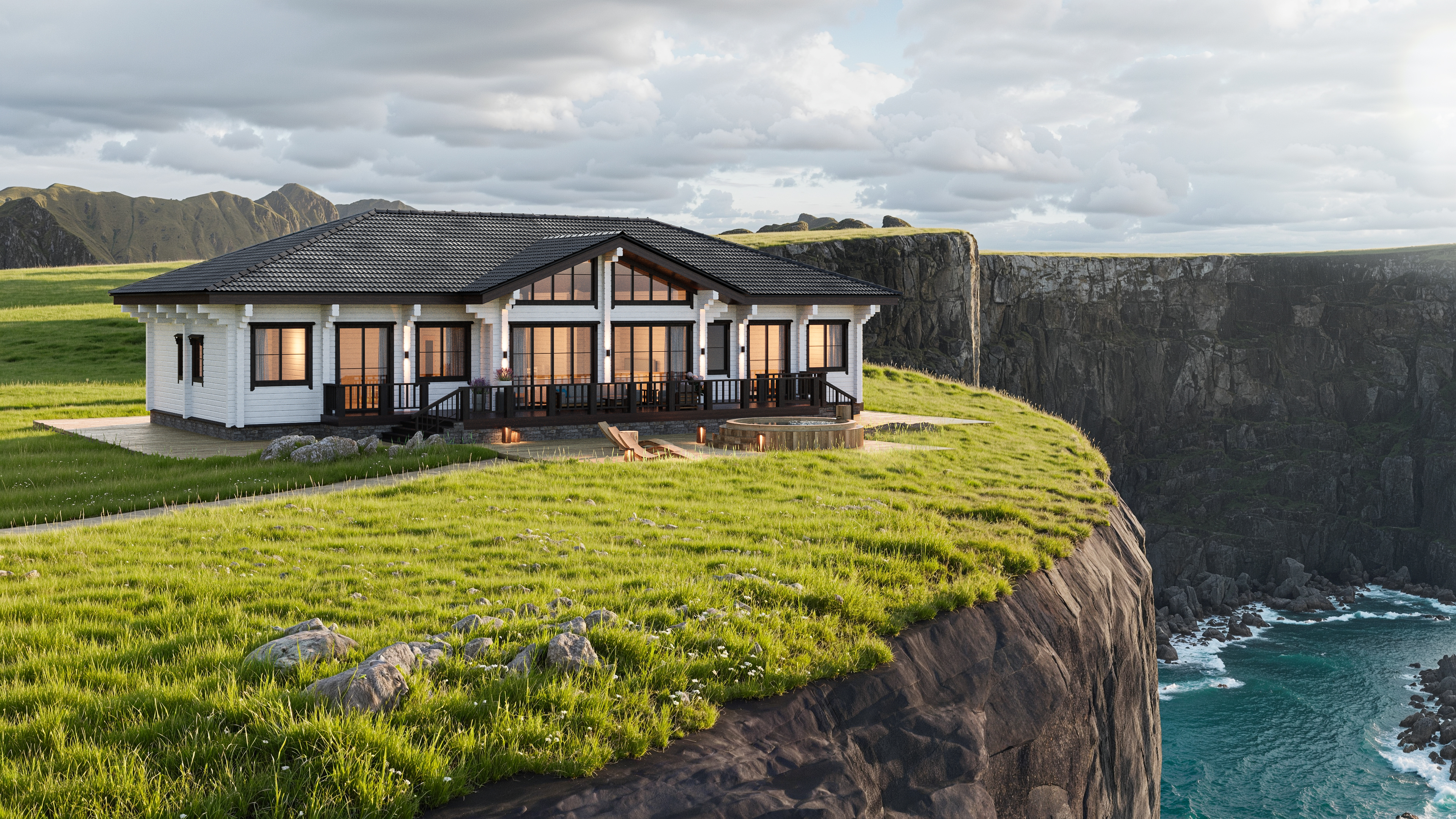 Визуализация дома на скале. В проекте был использован ресурс NishAI, для придания реализма растительности и другим природным объектам. Для сравнения: второе изображение с использованием ии (но отредактированное в photoshop), третье изображение без(только 3ds Max+coronarender+photoshop). Все остальные рендеры с небольшой доработкой ии.