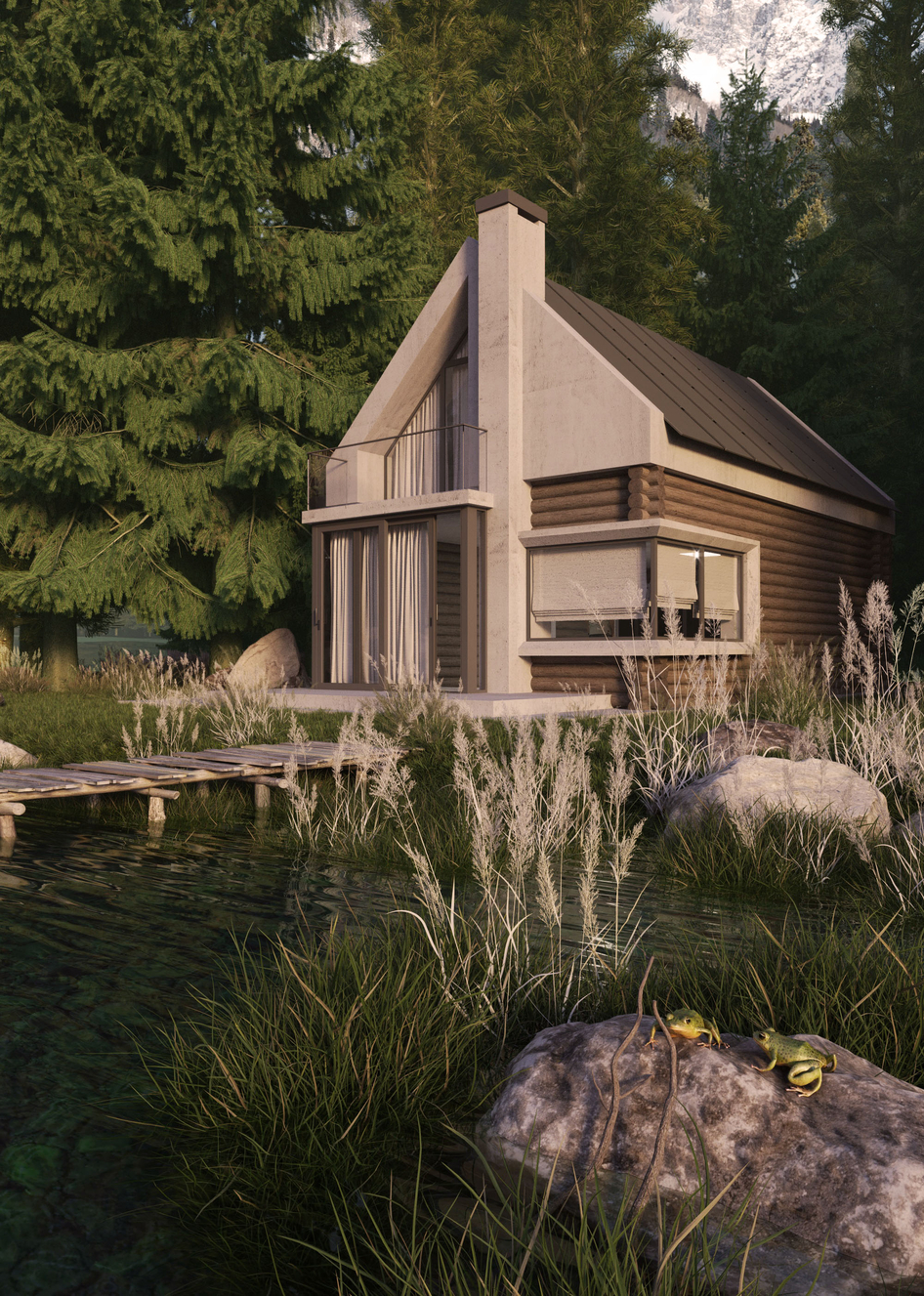 Мне бы хотелось, чтобы мой дом в лесу выглядел примерно так. Сцена и архитектура мои.