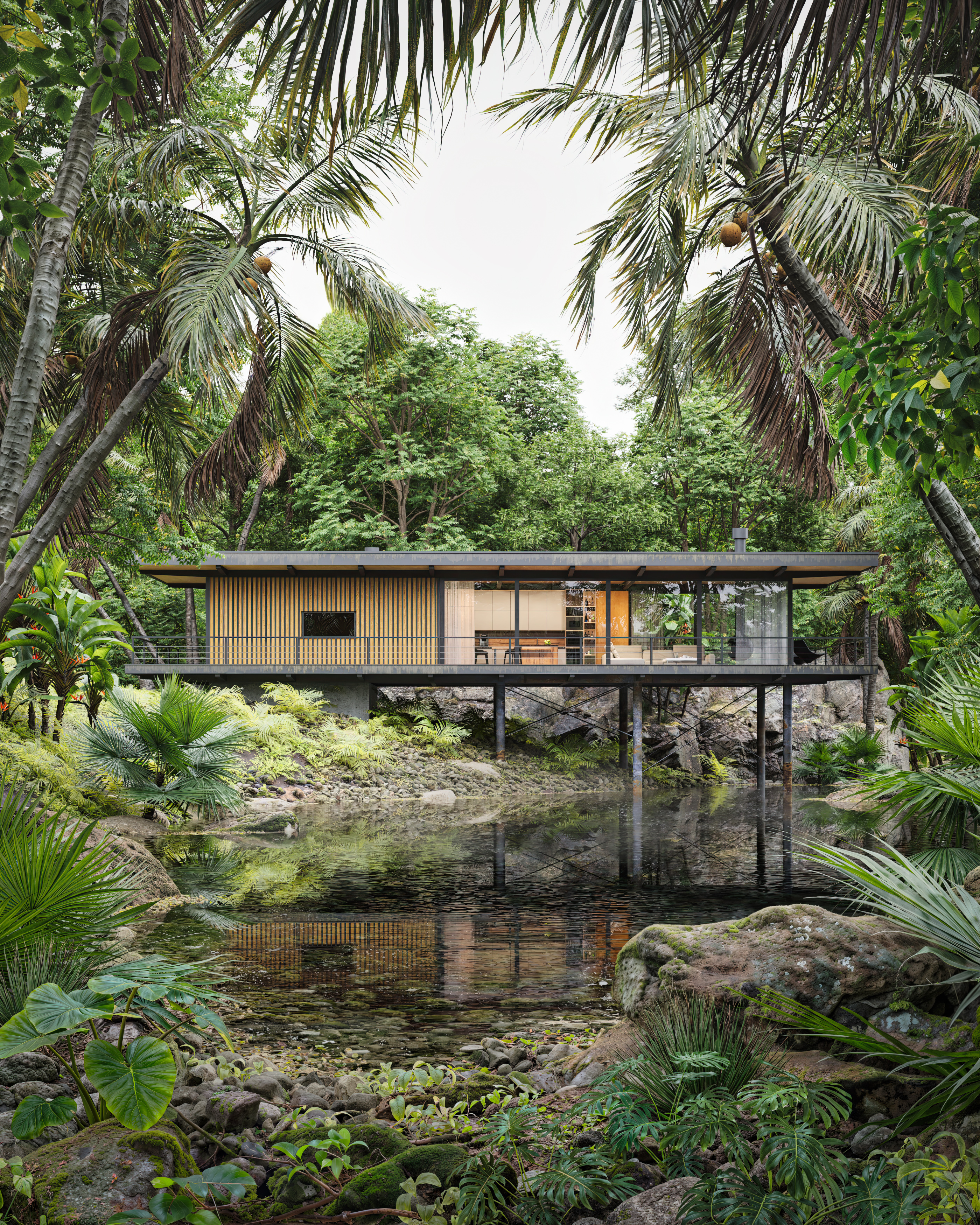 Концептуальный не коммерческий проект небольшого дома в уютной живописной локации. Проект выполнялся для души и под настроение, для повышения собственного уровня профессионализма. Модель дома, а также рельеф выполнен в 3ds max, растения и камни взяты из библиотеки megascans, рендер производился в Corona 12. Под каждый кадр создавалась отдельная сцена, для создания наиболее выгодной композиции. Также производилась обработка изображений при помощи SD, масштабных изменений не вносилось, дорабатывались растения на переднем плане, некоторые текстуры, а также корректировались 3д модели людей, для большей реалистичности. Спасибо за просмотр.