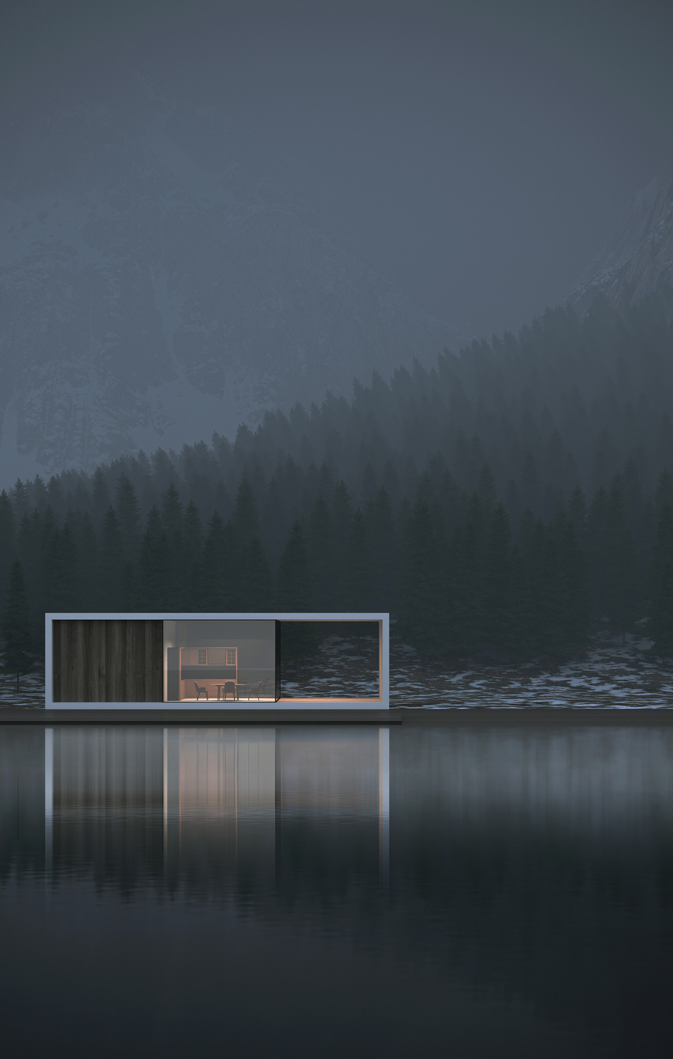На референсе туман плотнее и не такой однородный, выглядит сильно живее. Отражения в воде не такие резкие и яркие. И центр композиции сильнее выделен светлой контрастной полосой, у вас эта зона слегка теряется. Террасе/причалу не хватает текстуры, пластиково выглядит. Ножка на которой стоит дом потерялась, добавляла деталей. Ну и мелочевочки бы в интерьер, человечка. Дьявол в деталях. Успехов)