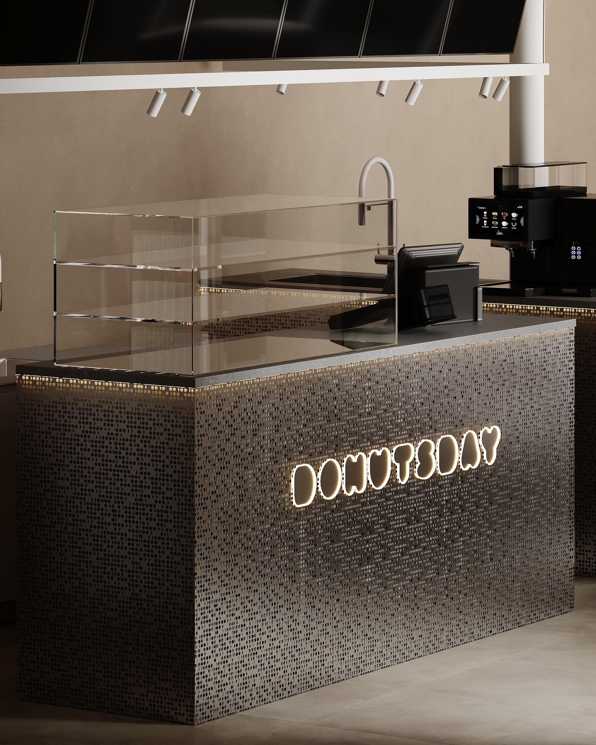 Форма отверстий повторяет геометрию английских букв DO что стоят в начале названия кофейни DONUTSDAY.