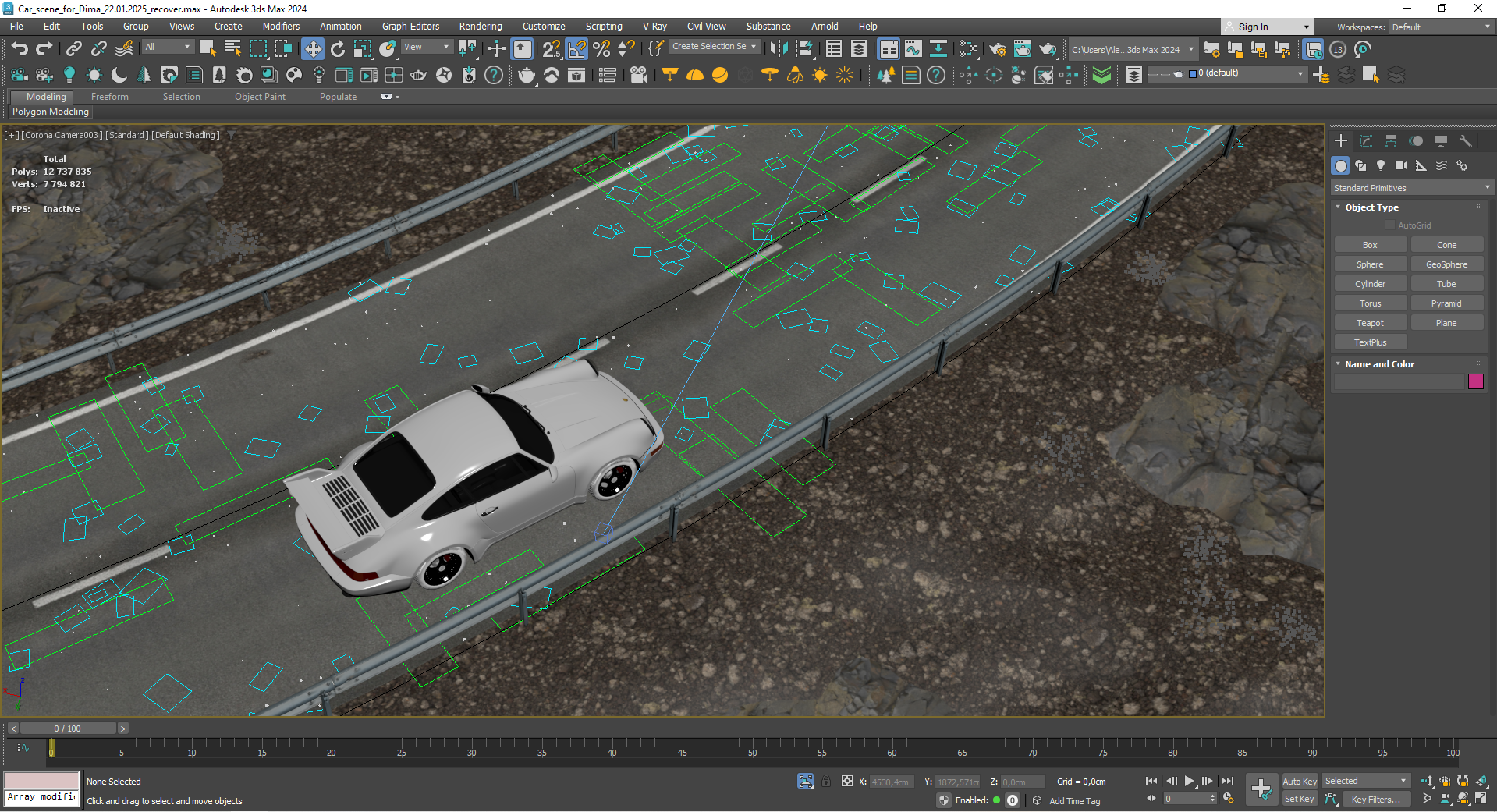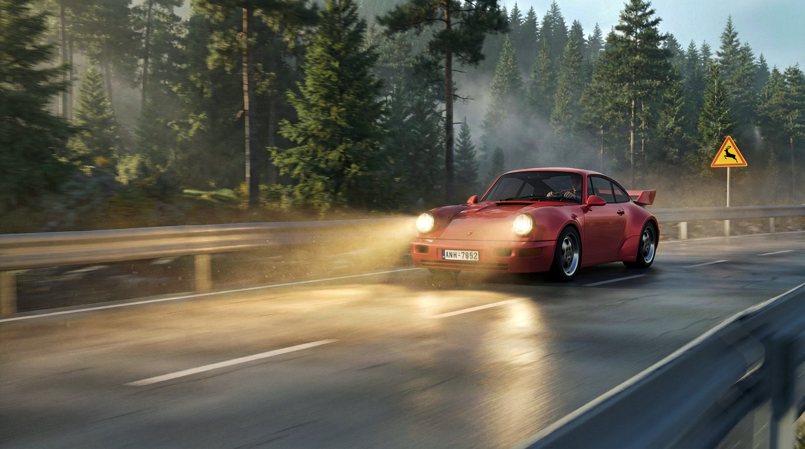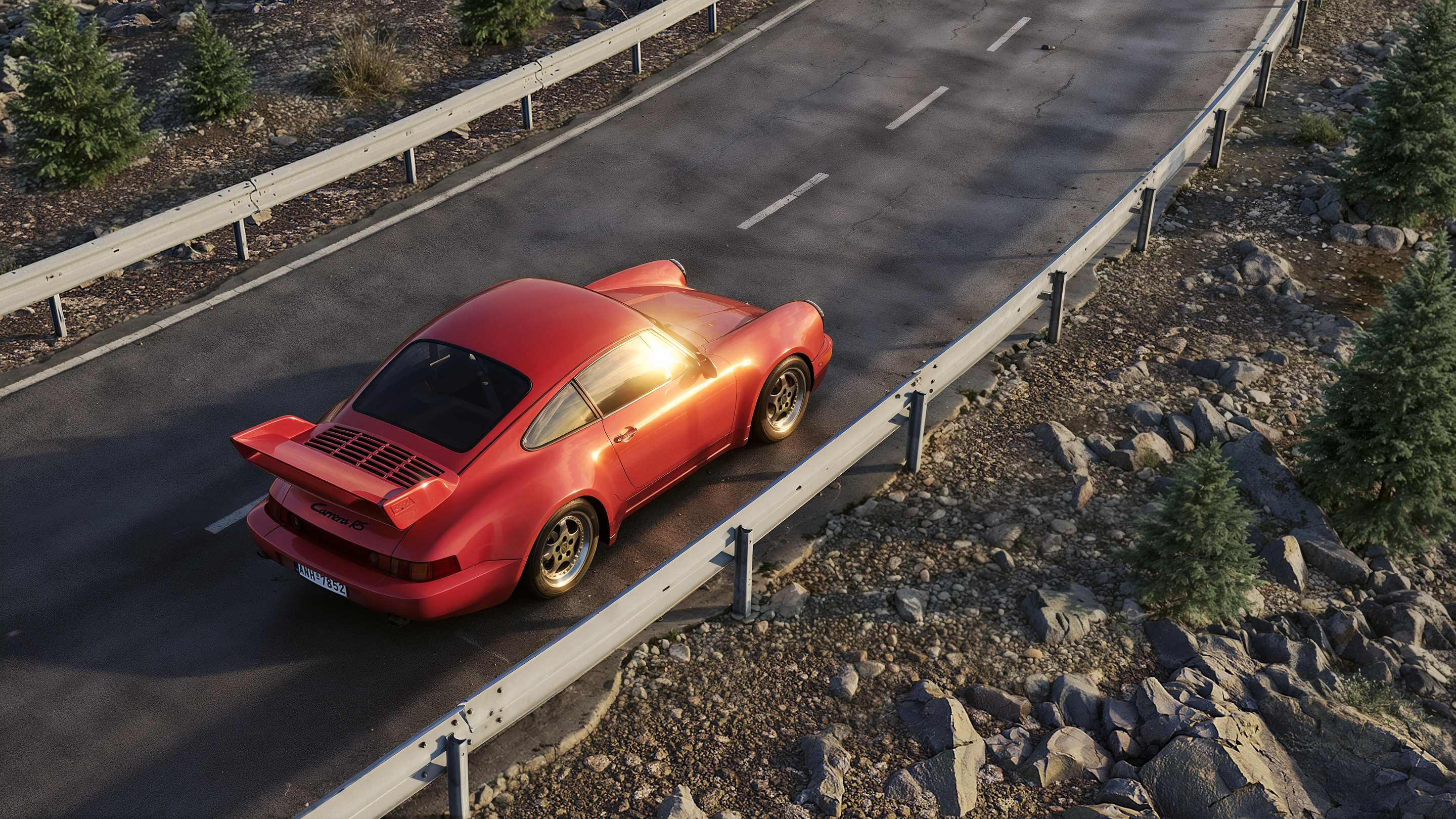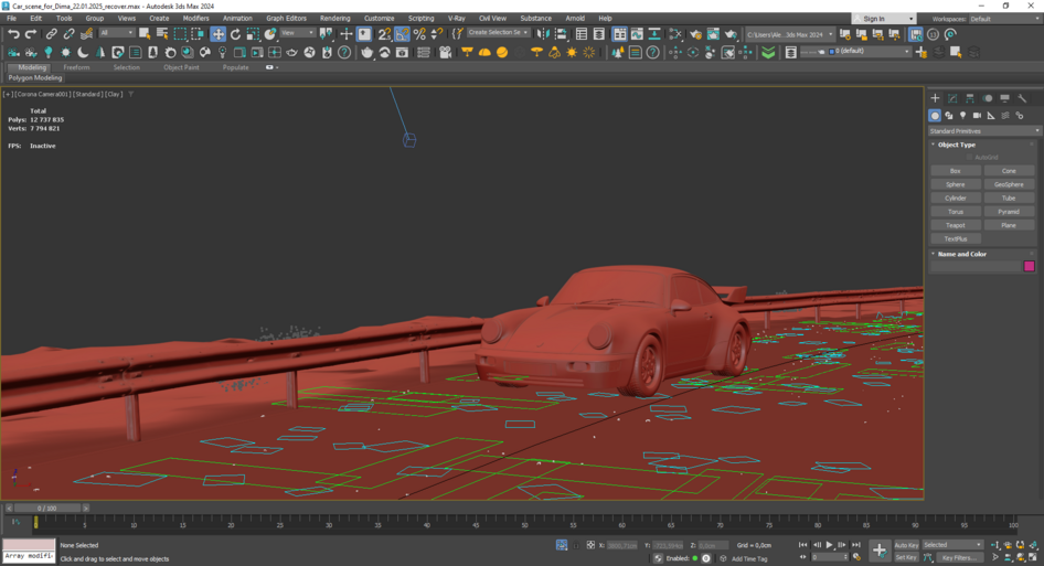 Машина и дорога сделаны в 3d max, corona. Далее базовые рендеры были взяты для генерации ролика в ИИ. Скрины и рендеры прилагаю. На первом и втором кадре добавлена растительность с ИИ. Третий кадр уже генерация, но то же на основе 3д рендера.