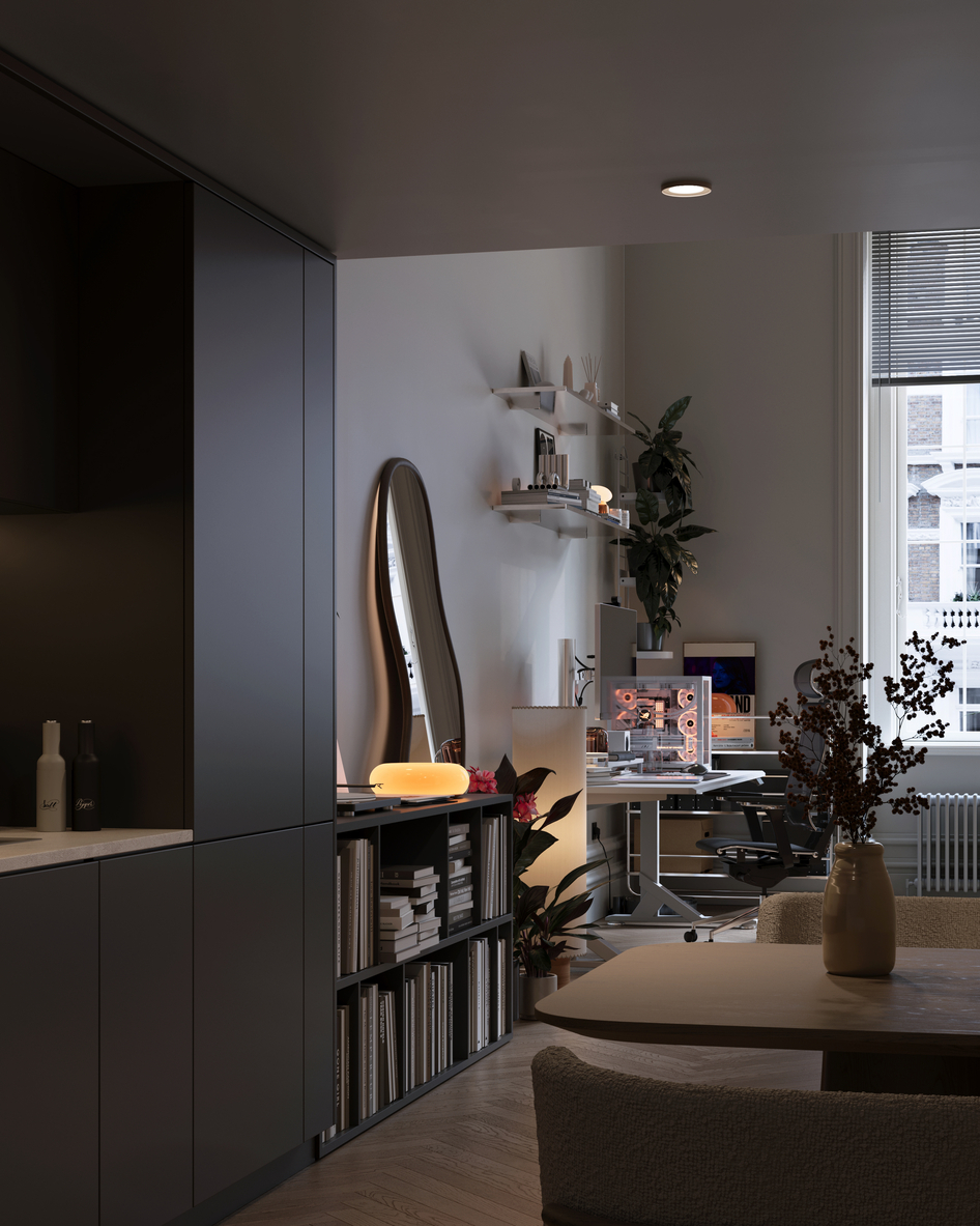 Уютная зона отдыха, функциональное рабочее место и полностью оборудованная кухня
