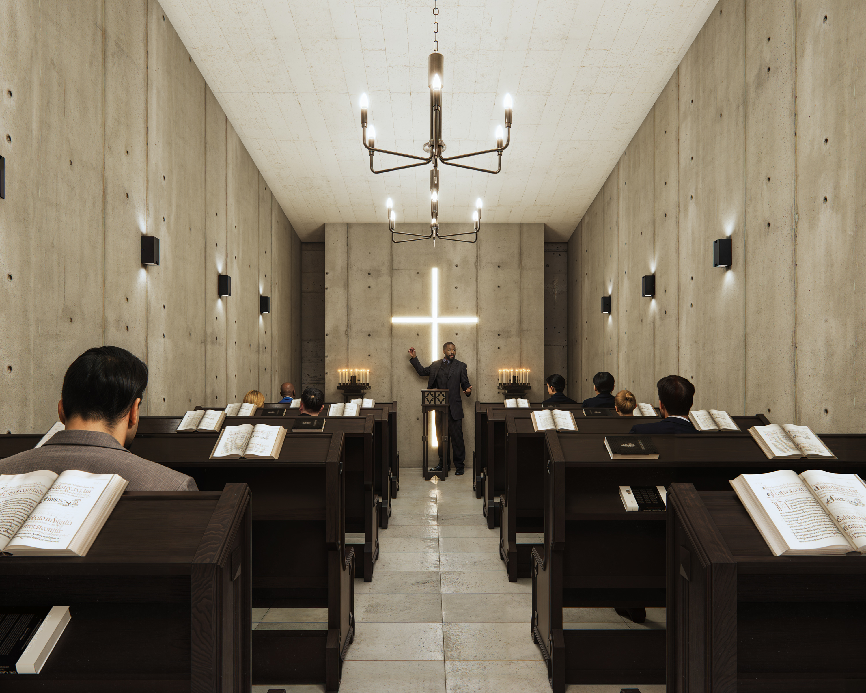 Drift Chapel is an architectural visualization project created by bairdesign.art