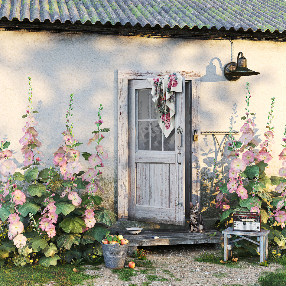 Свет очень приятный, судя по мальвам и яблокам шафран — августовский.