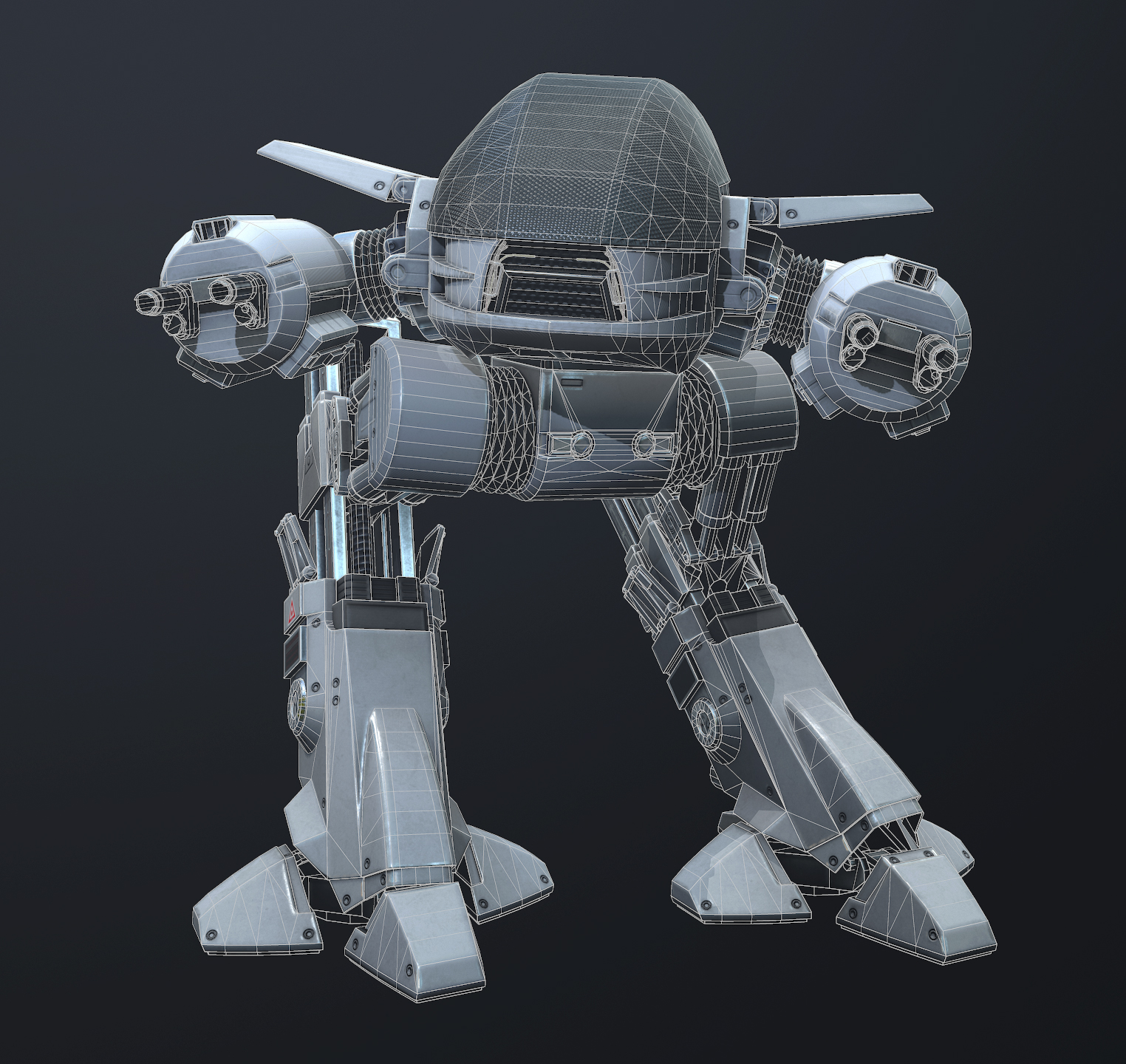 Лоуполи модель робота ED 209 из фильма Robocop, 20к треугольников, текстура 4к. 3Ds max, Substance Painter.