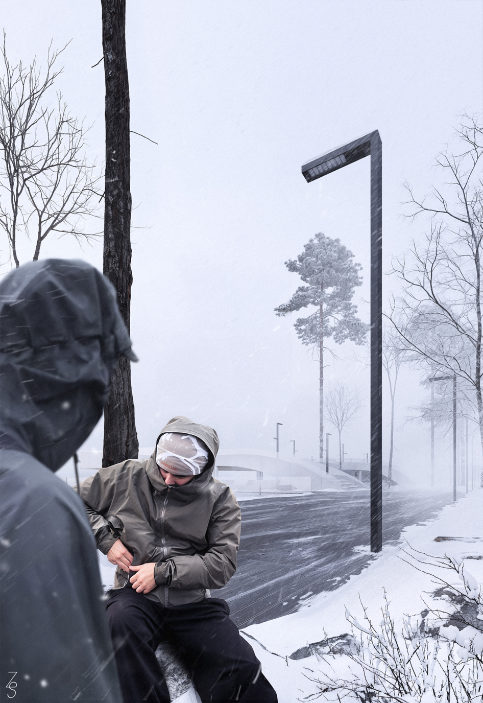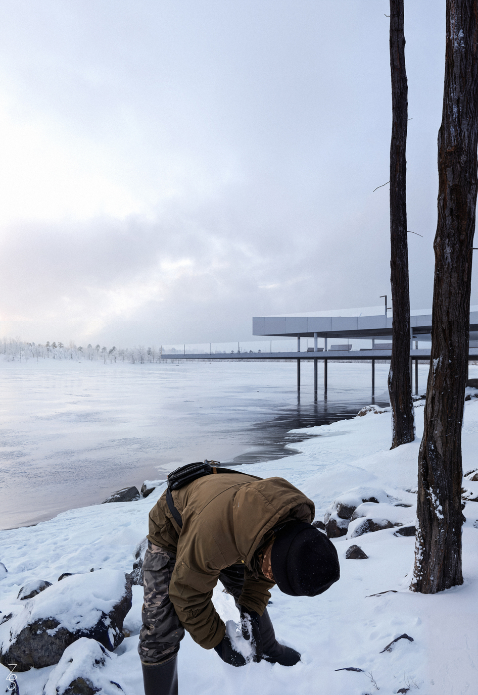 Целью данных визуализаций было отобразить атмосферу сурового сибирского климата, внедрить сам объект в контекст и сделать его неотъемлемой частью.