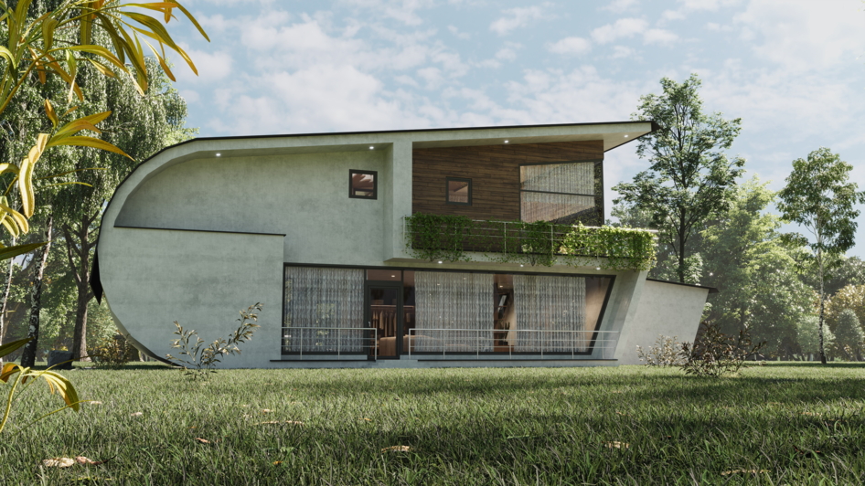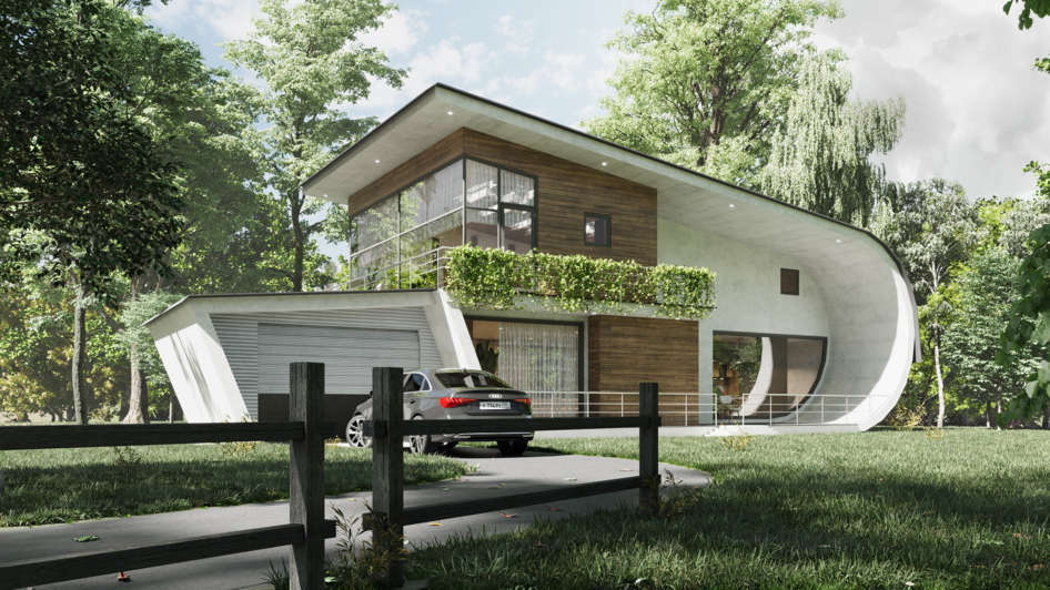 Первый самостоятельный опыт в экстерьерной визуализации. За основу был взят образ дома от автора unit85, который в процессе работы был значительно доработан и изменен.