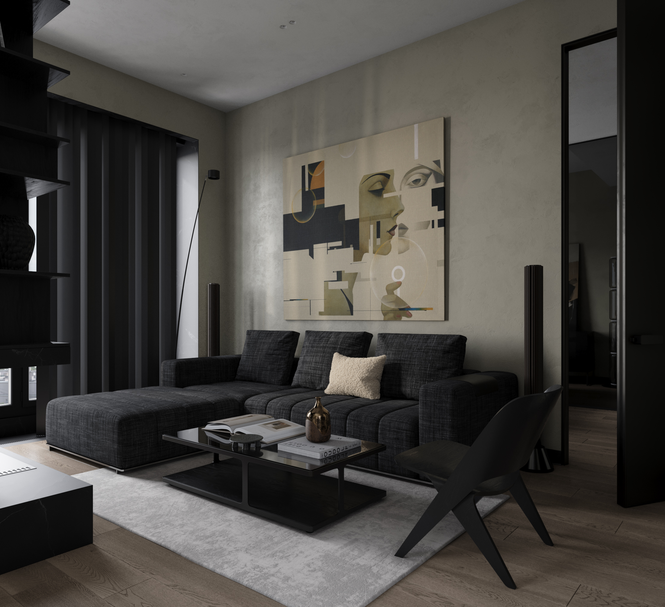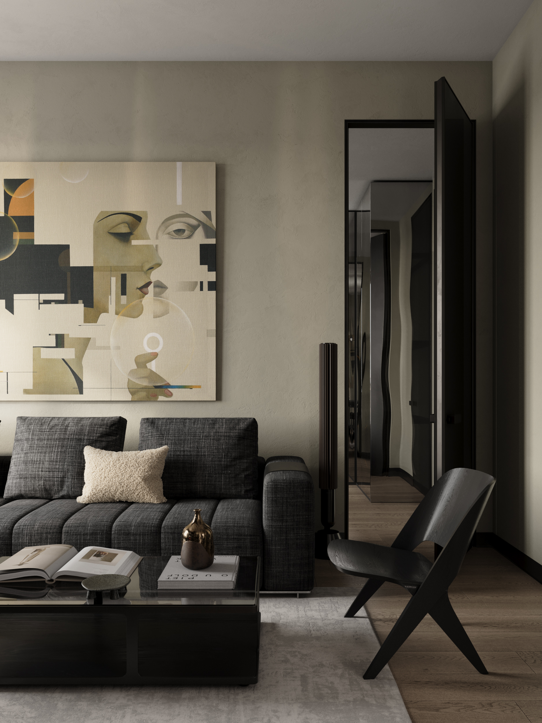 Minotti LINHA table and FYNN SADDLE HIDE Chair