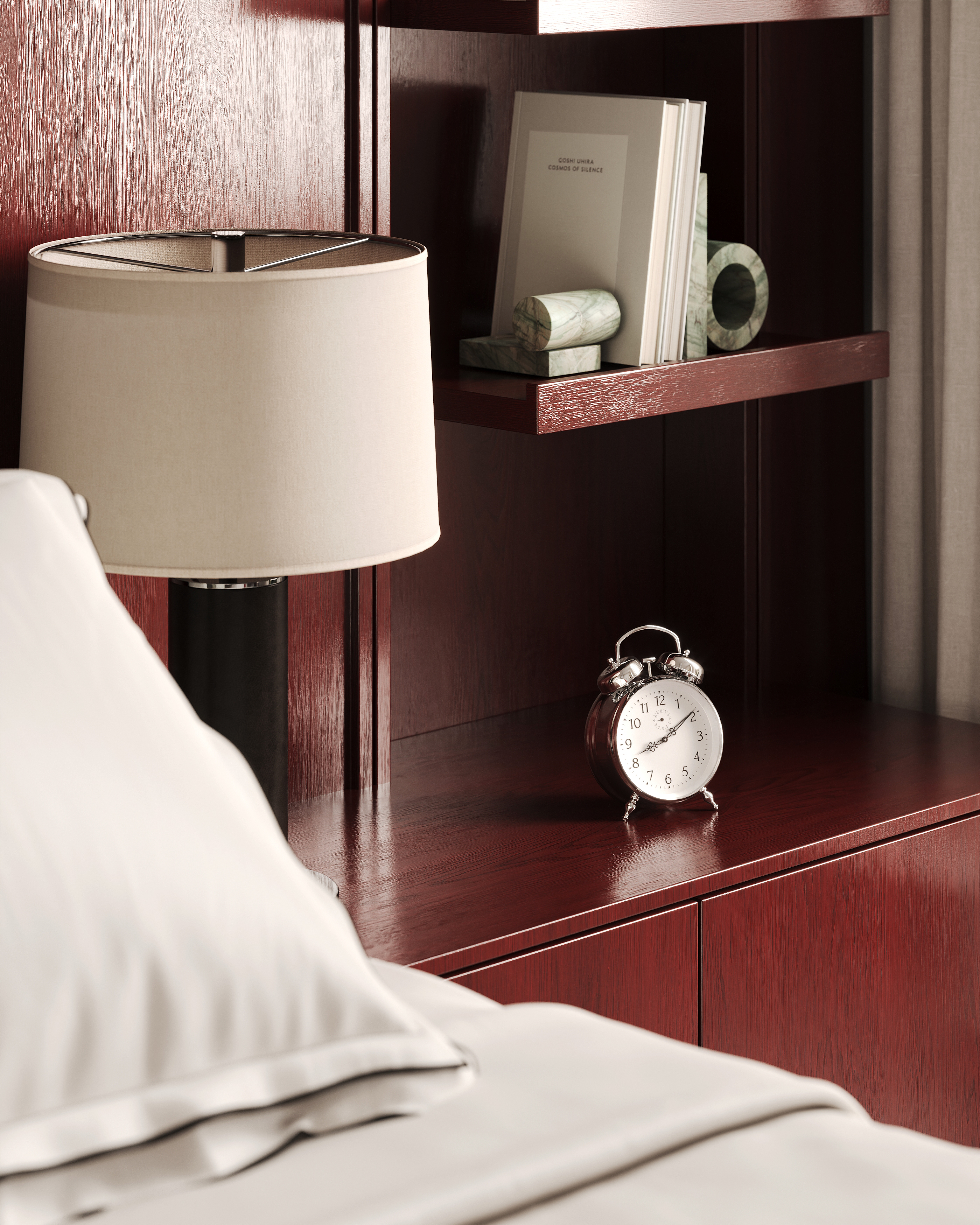 Шикарная работа, только в глаза бросилось неправильное направление текстуры на полке под будильником) а так очень красиво)