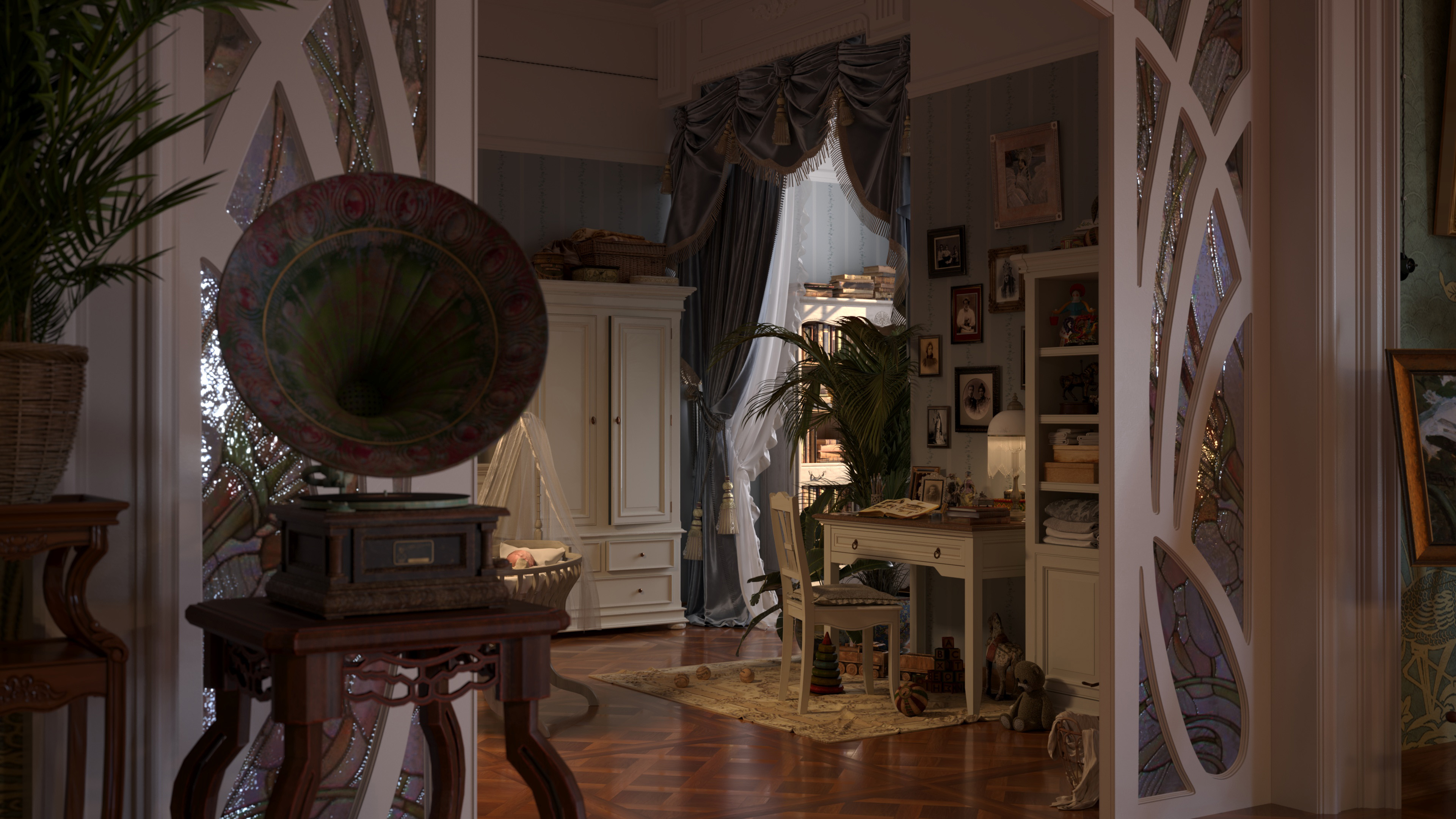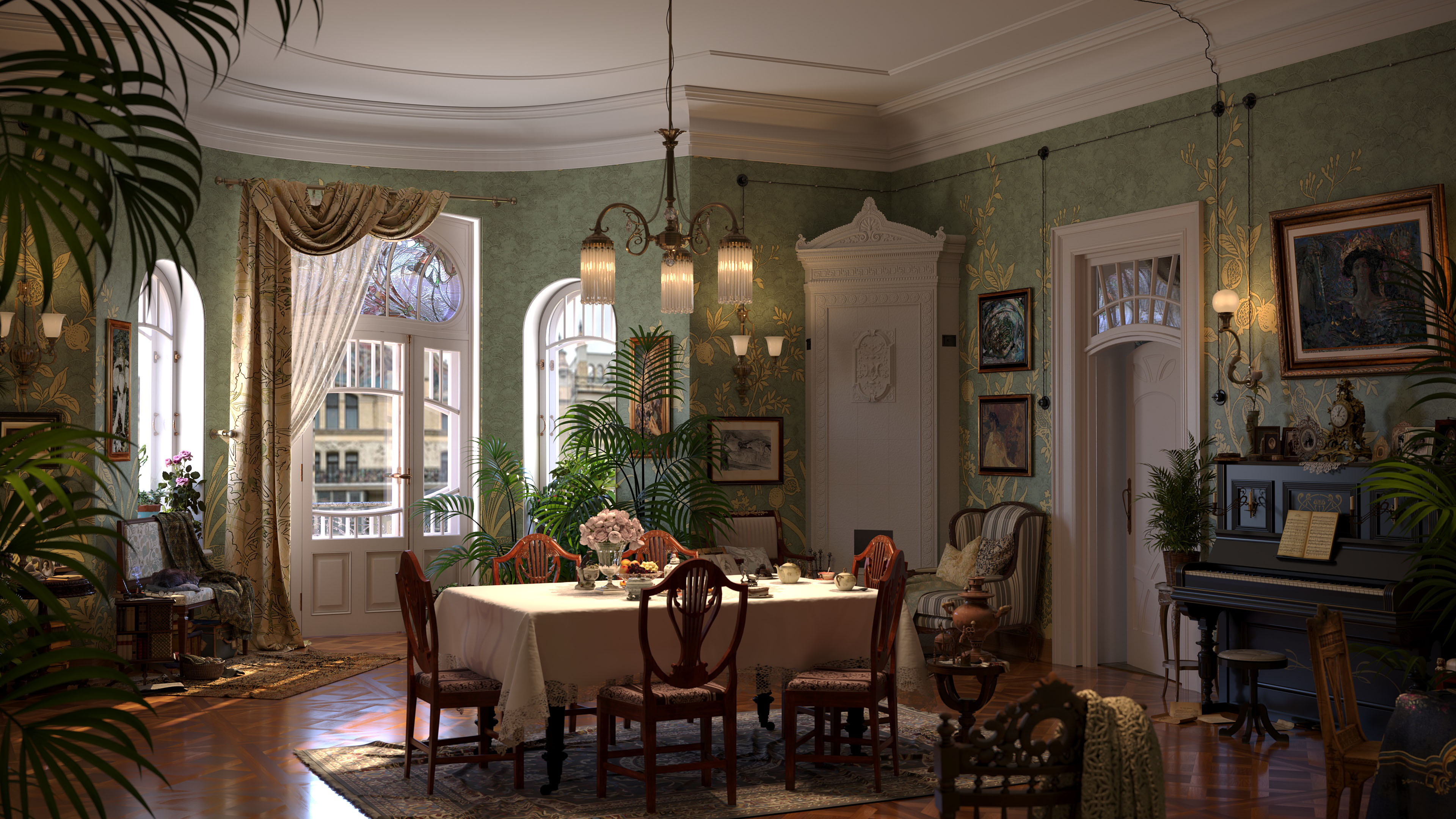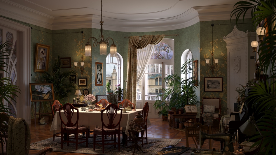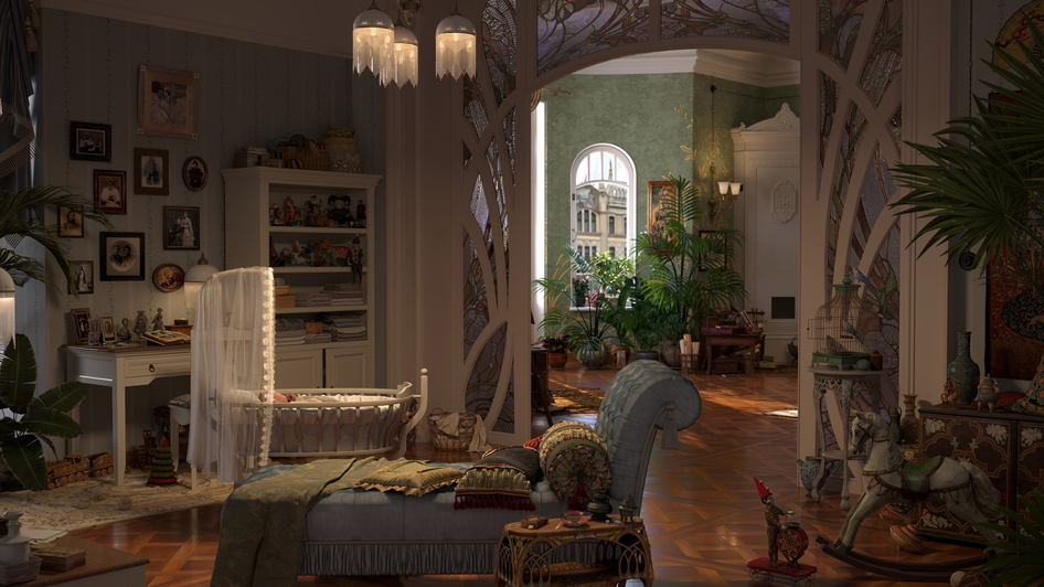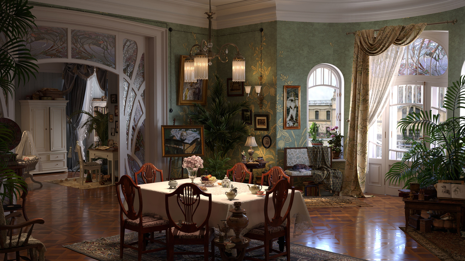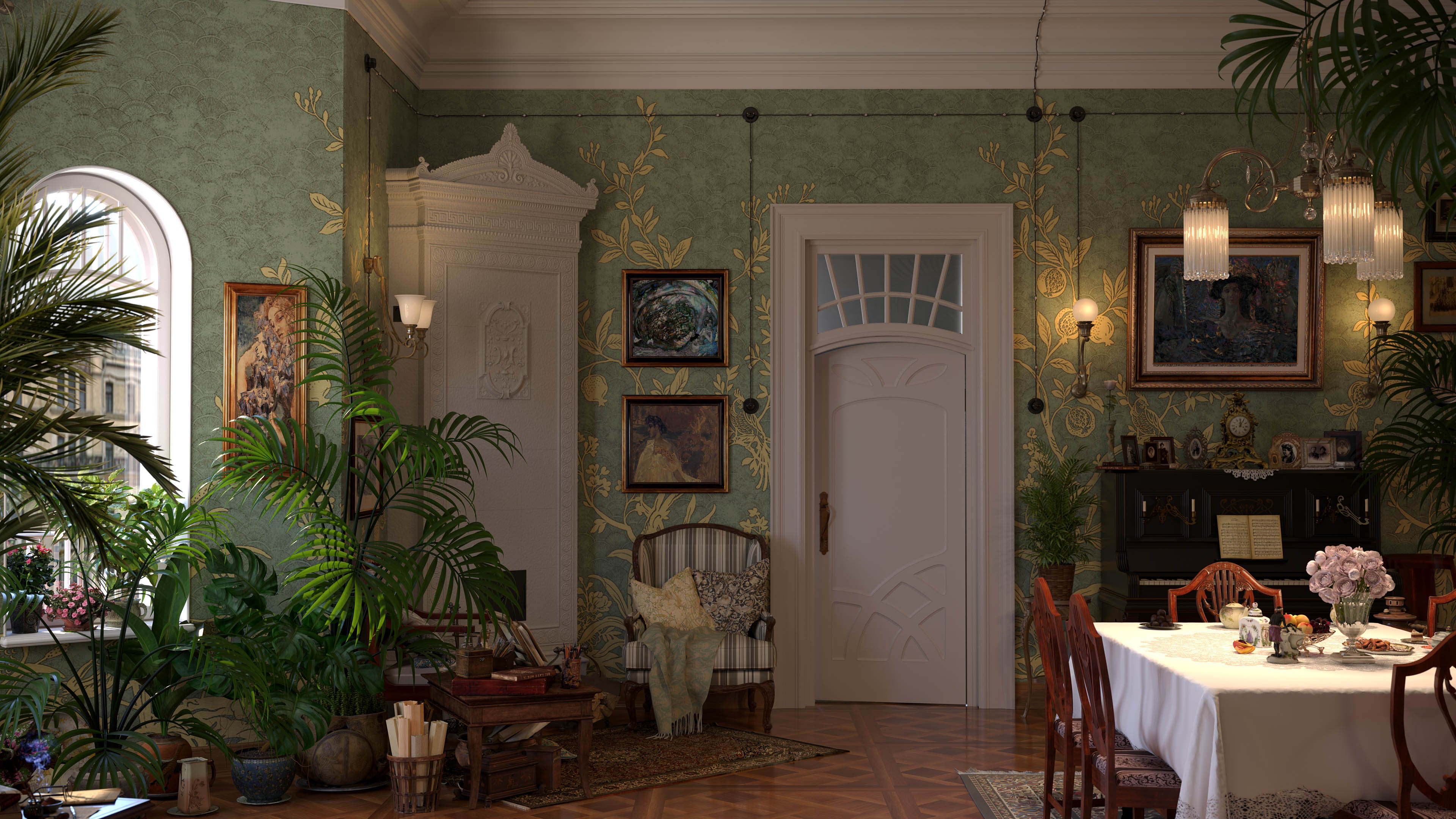 Проект цикла короткометражных фильмов про известных русских художниках конца IXX начало XX веков. Визуальной информации о том какая была квартира художника Врубеля почти нет. Поэтому это проект собирательных отображающий стилистику архитектуры того времени и сценарное представление характера персонажа.