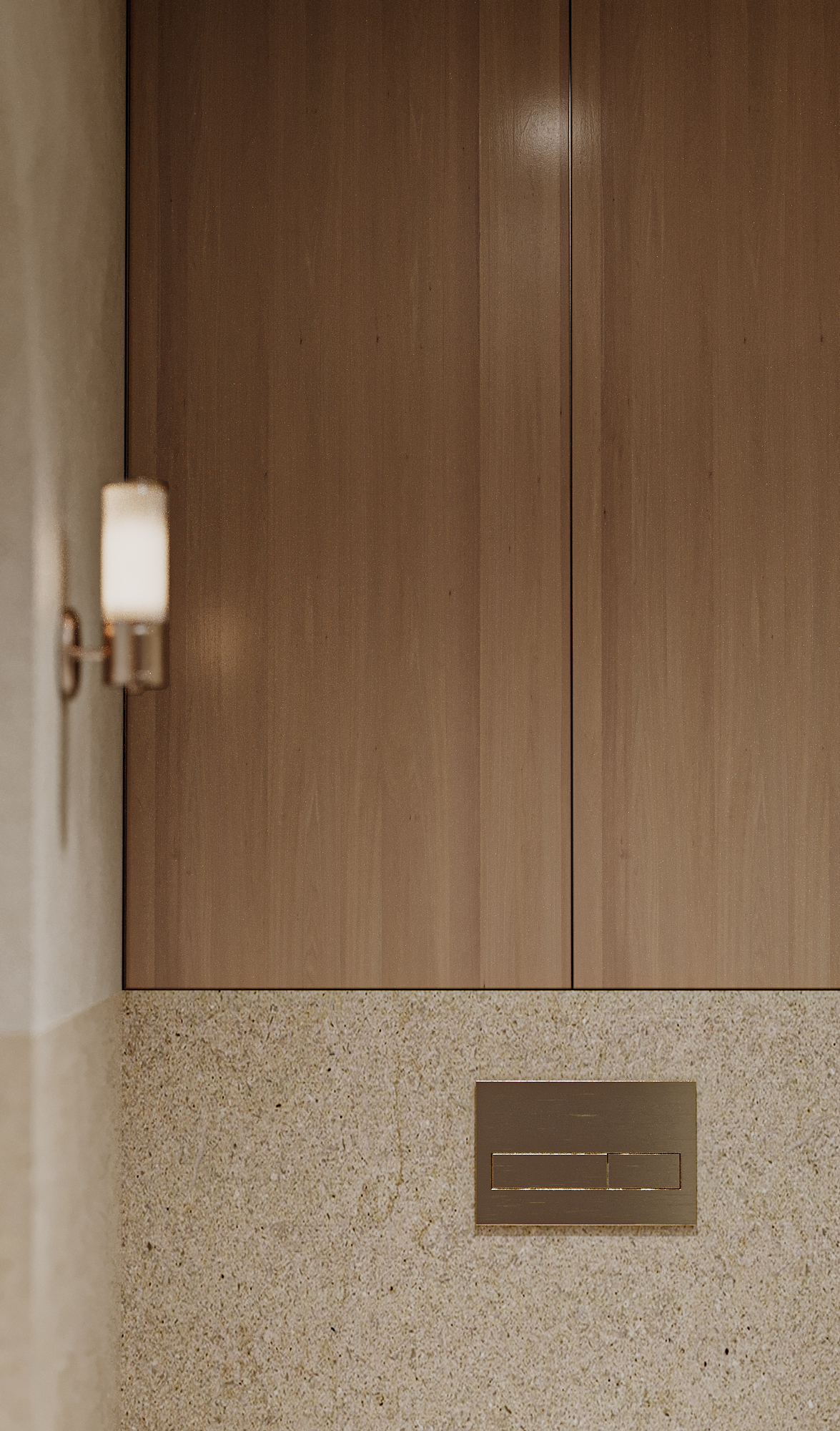 Очень нравятся материалы, особенно бра и плитка на стене играют классно.