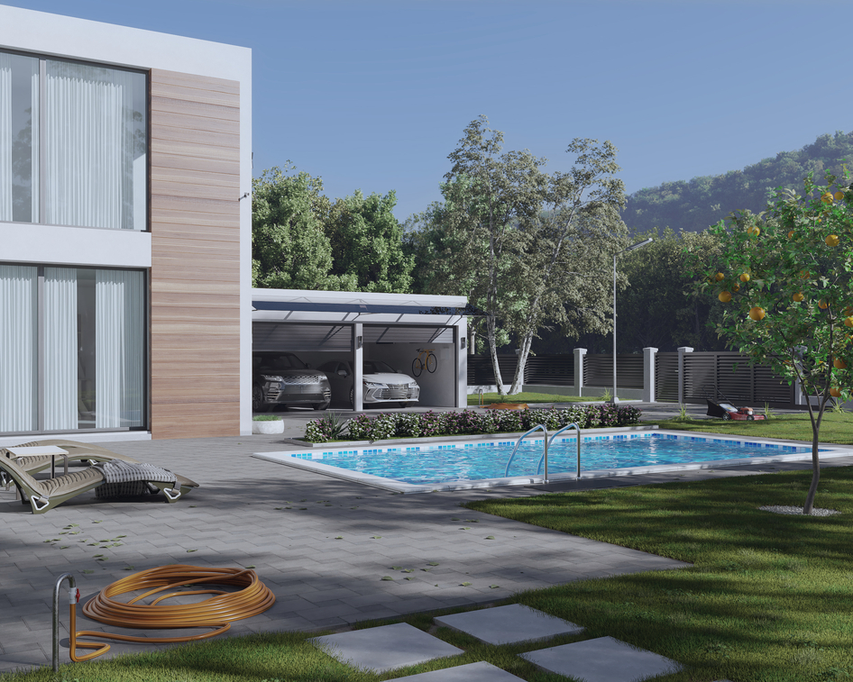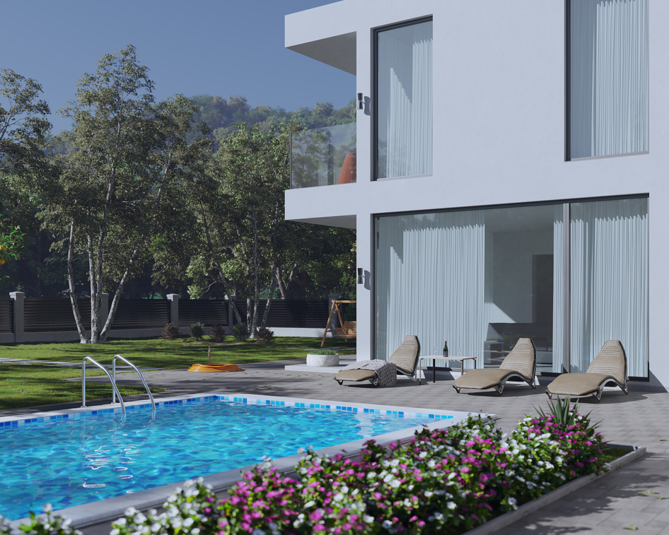 Хорошая работа, приятные тени, только штукатурку белую хотелось бы более неравномерной. И на кустах слетела текстура на первом кадре. И листья на траве лежат так будто там стекло невидимое