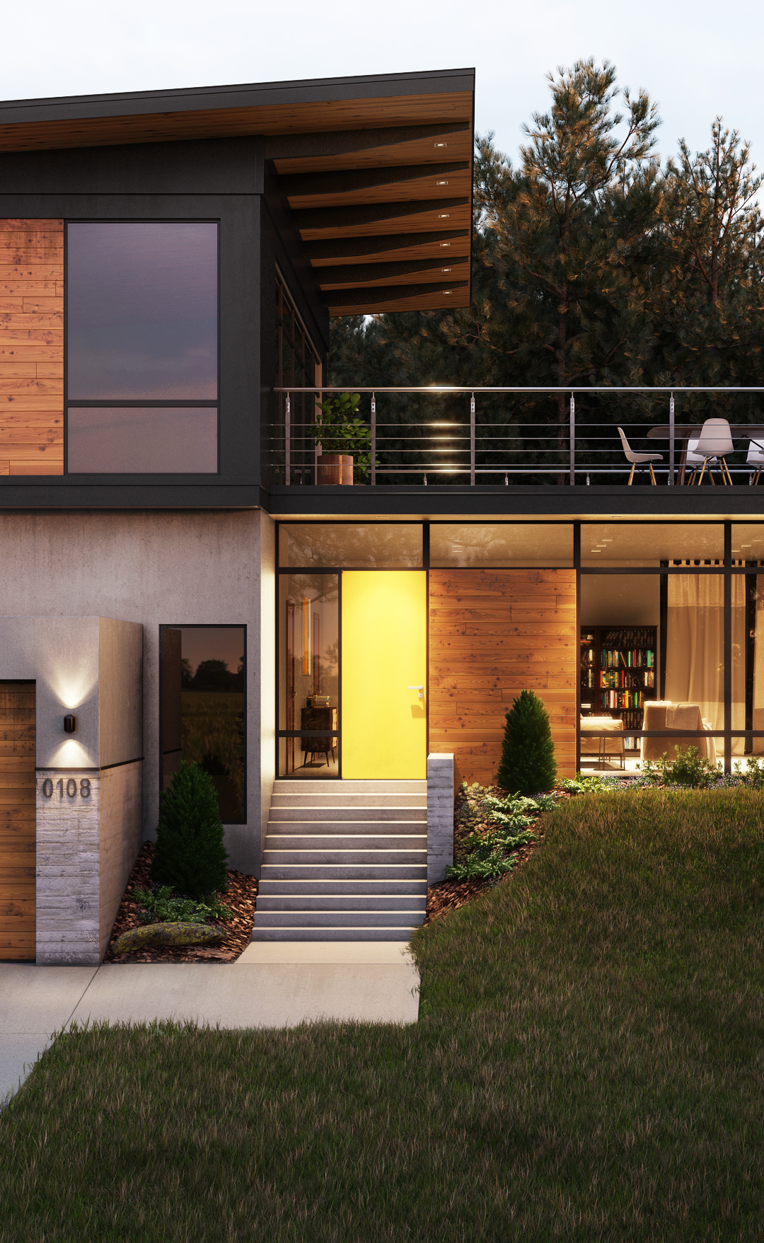 Лазил по Пинтересту и увидел прекрасный дом, решил по пробовать повторить. Потратил на всё дня 3. 3DSMax+Vray+Photoshop