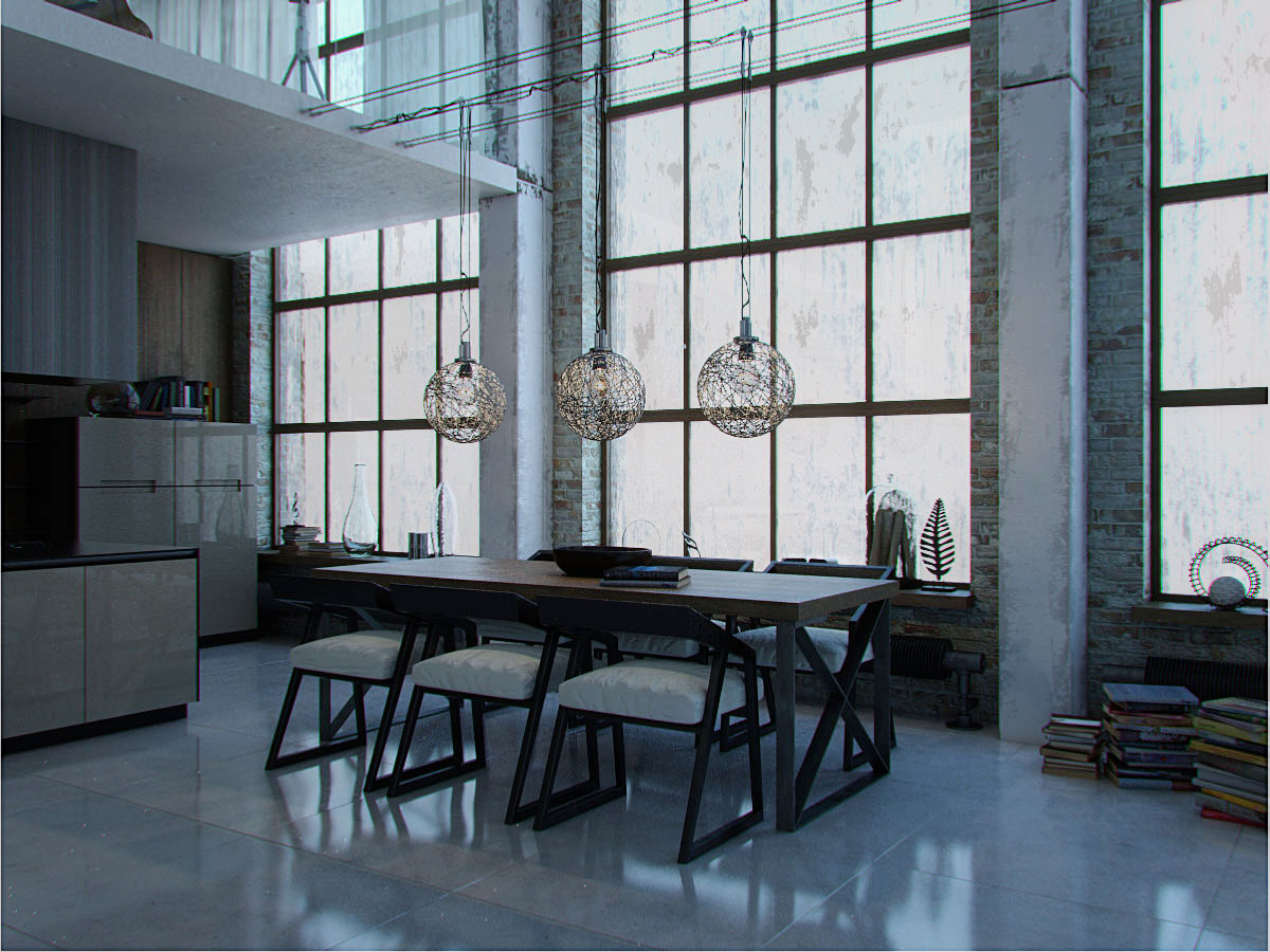 Раз стена с окнами оставлена не тронутой что бы быть \"изюминкой\" интерьера, тогда она контрастировать с \"новыми\" полом, перекрытием и т.д.