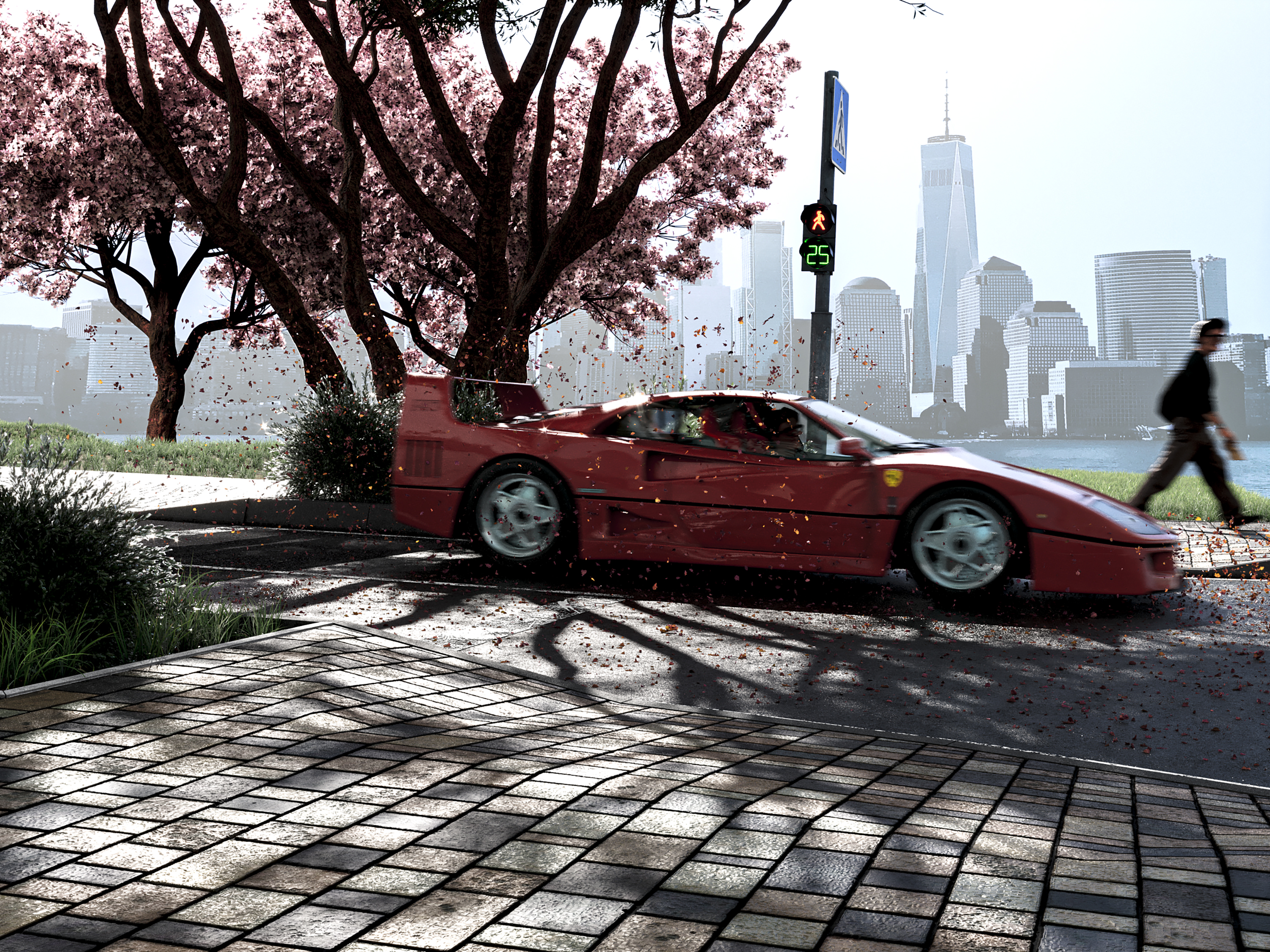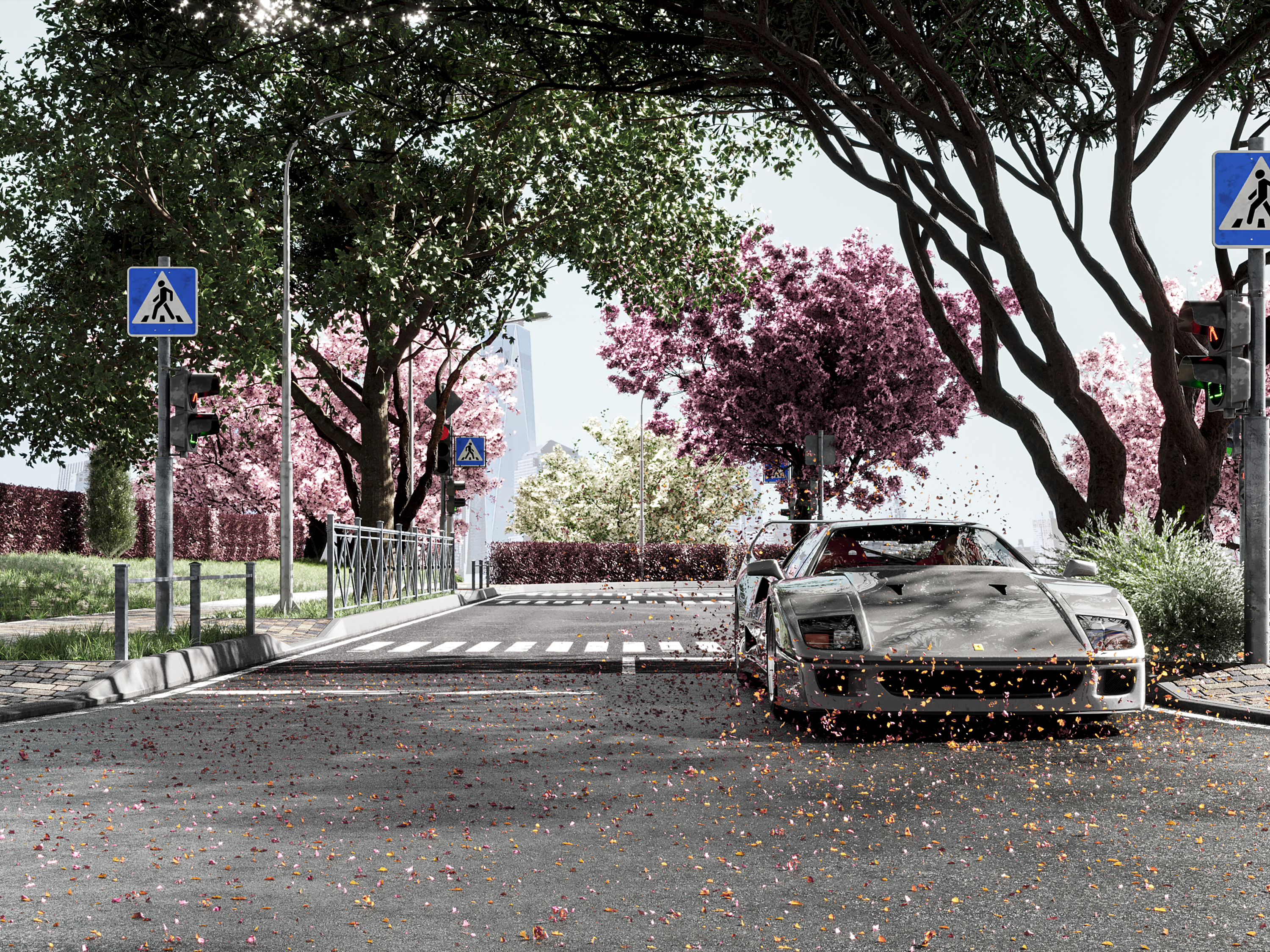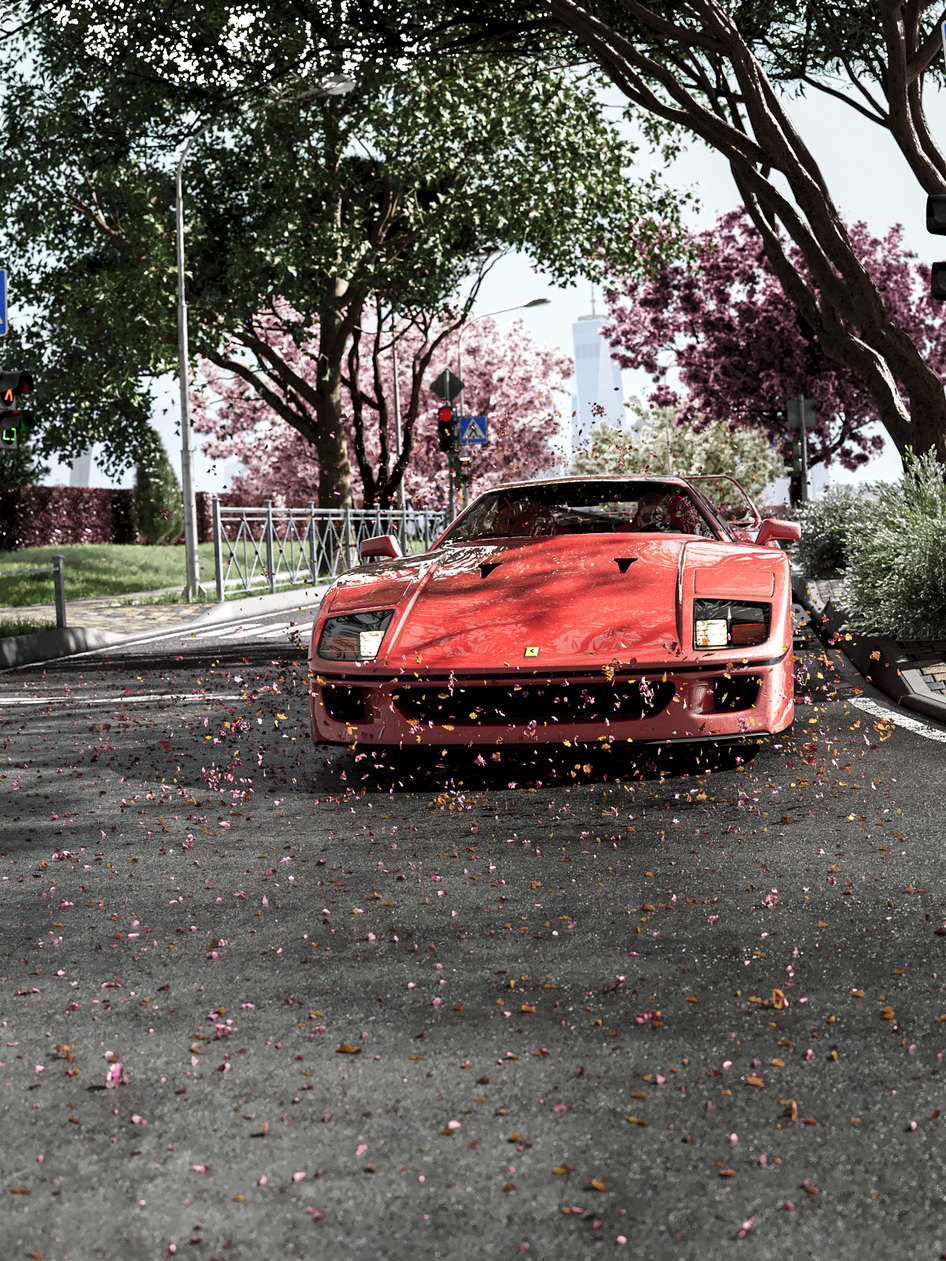 Когда вы добавляете размытие в движении для автомоблия, то учитывайте, что колеса тоже должны быть размыты, но вокруг своих осей, то есть радиально. В остальном атмосферно, драйвов получилось!