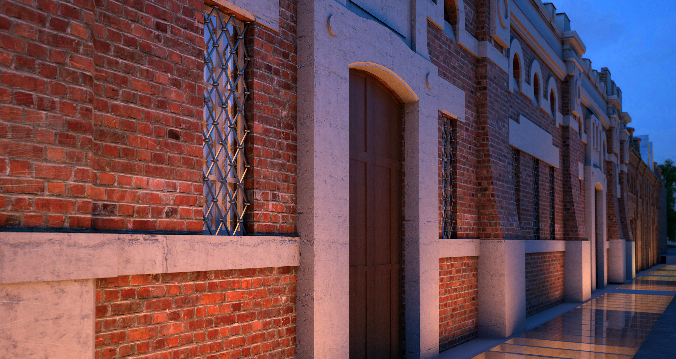 Стеклянный пояс вдоль фасада открывает историческую часть фасада оказавшеюся ниже уровня земли и там образуется галерея. Плюс возможность с улицы спустится на -1 этаж