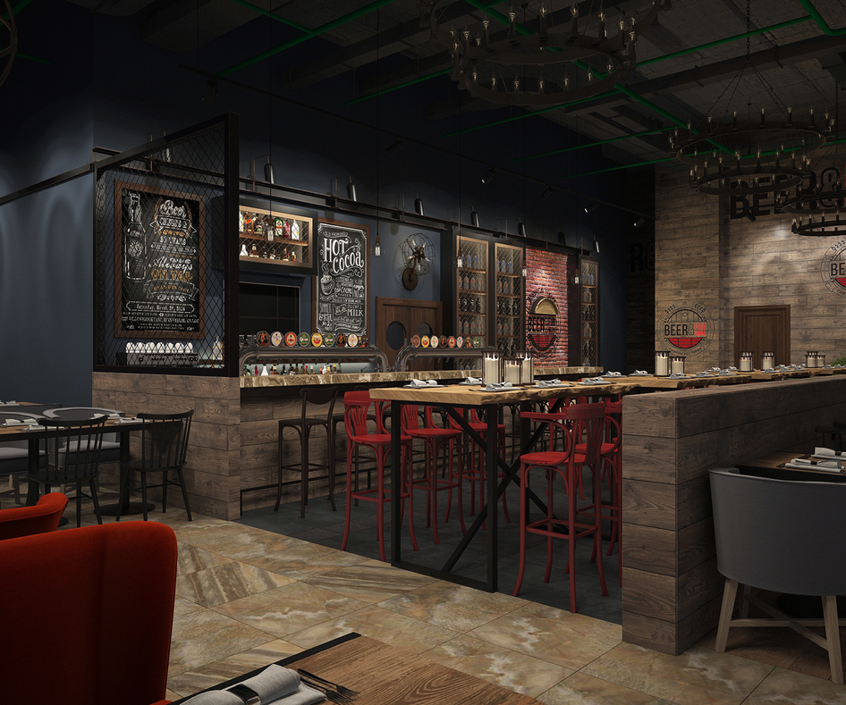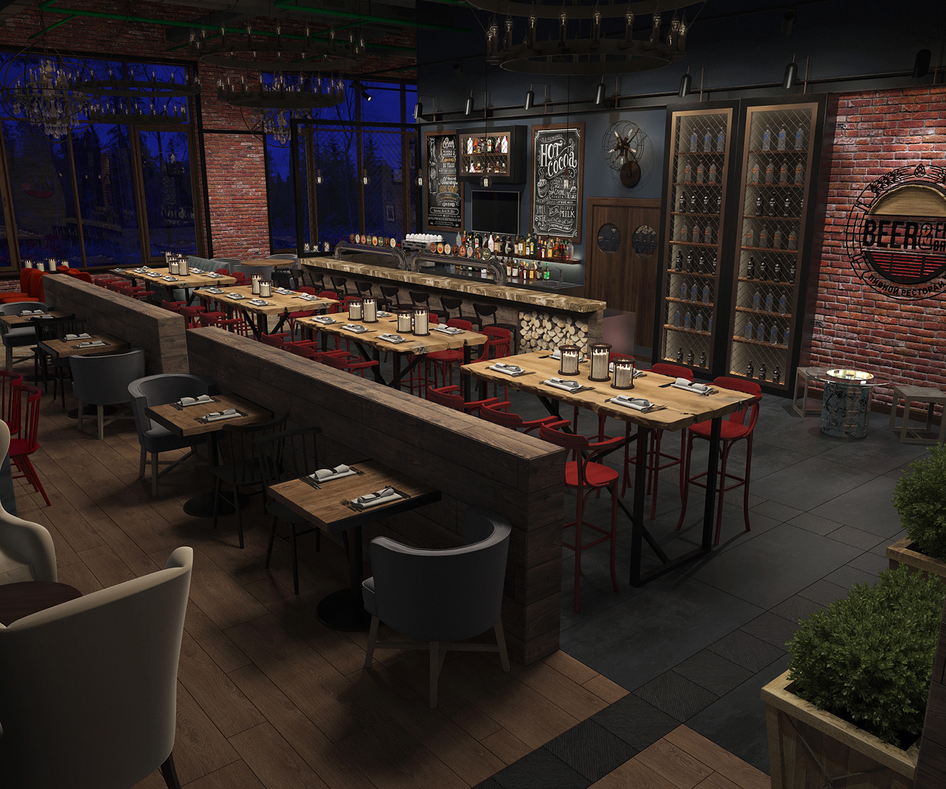 Визуализация пивного небольшого пивного ресторана. Проект Анны Мусиенко Больше ракурсов -