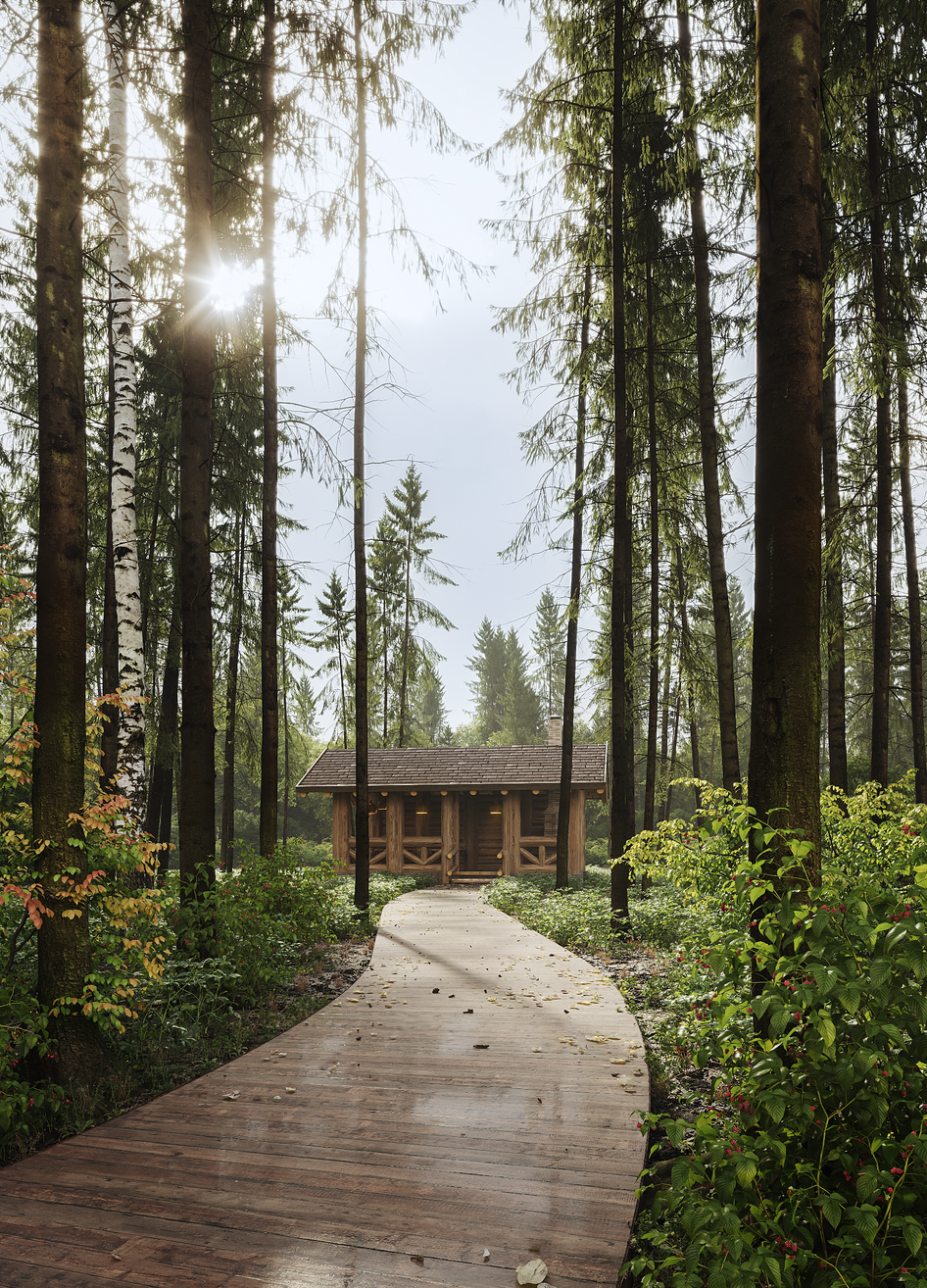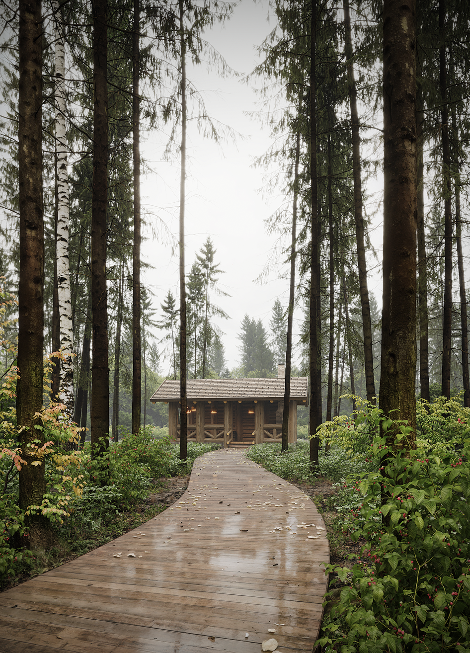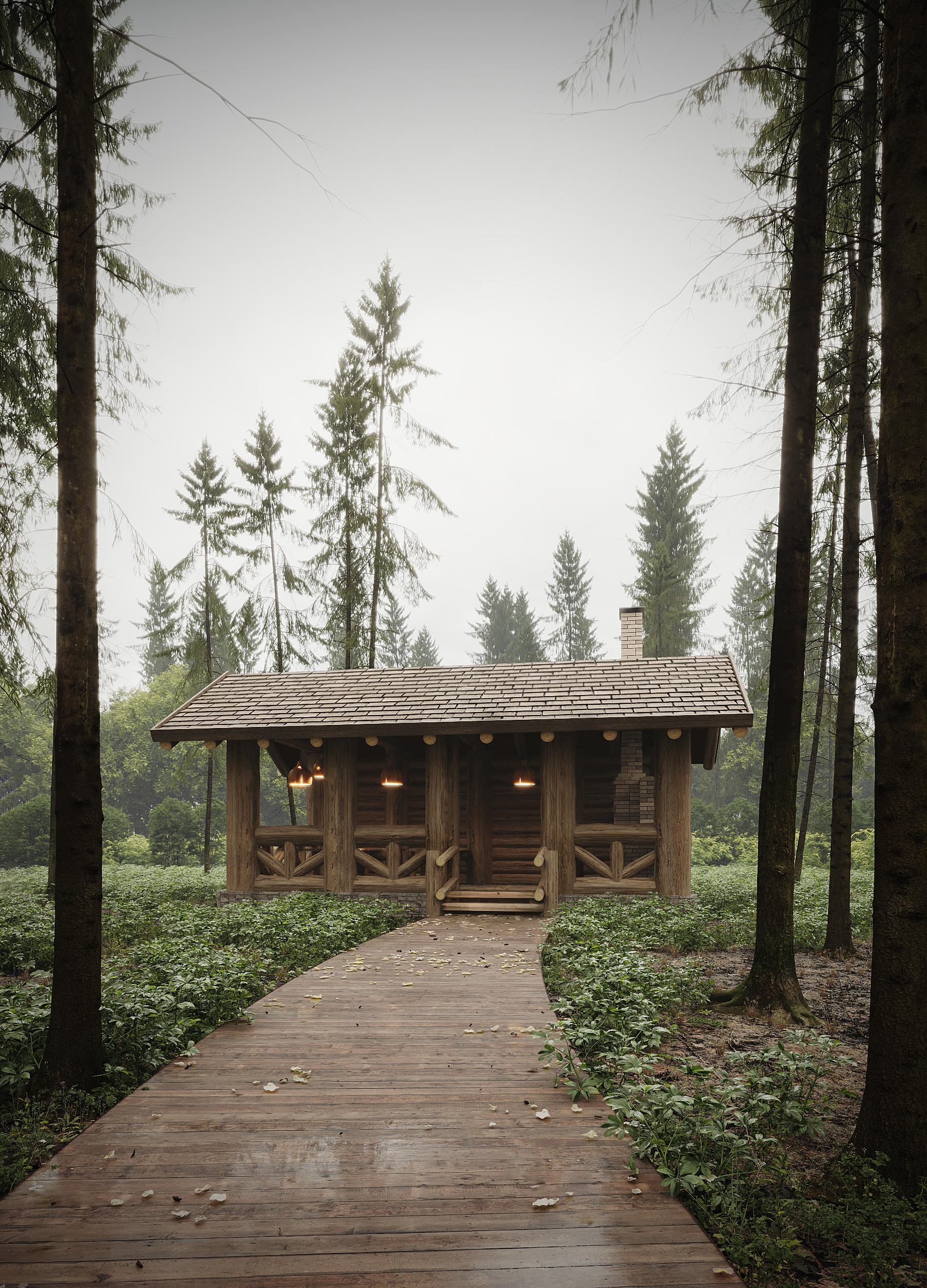 Хороший атмосферный лес, но то что из дерева...не знаю))