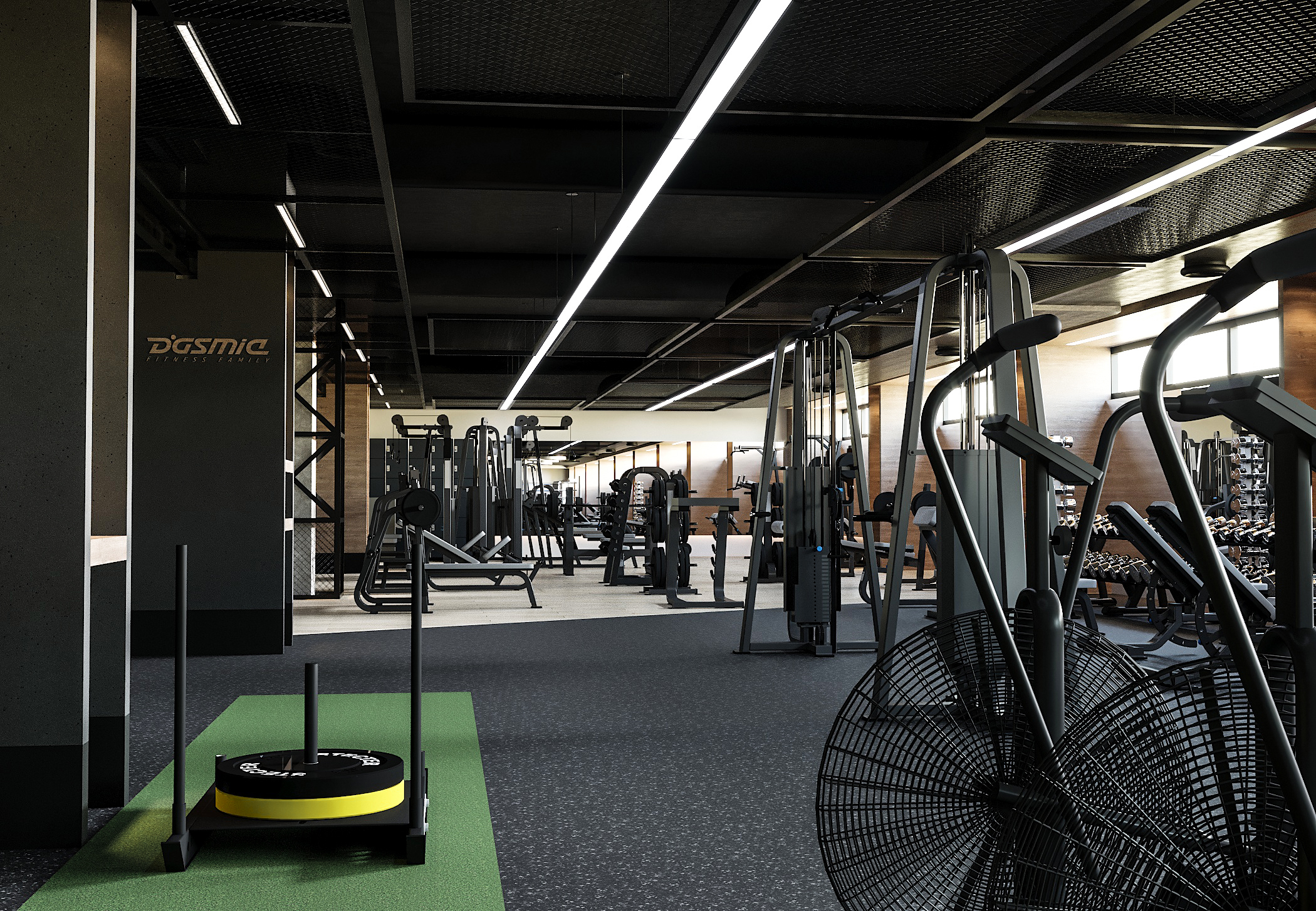 Первый спортивный зал) Был срочный заказ за 48 часов собрать и отрендерить Фитнес центр. 3d s max/Corona2.0/Ps