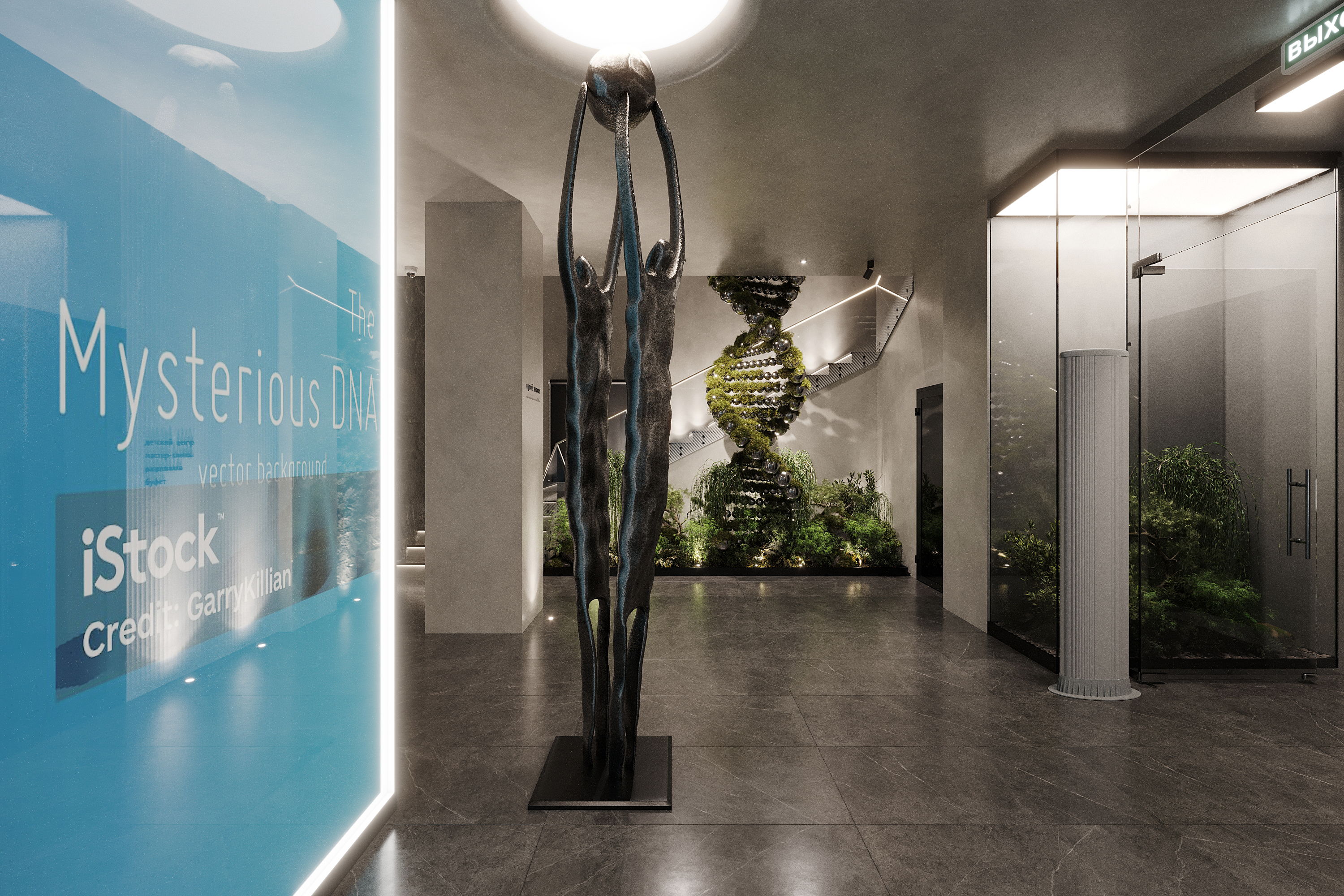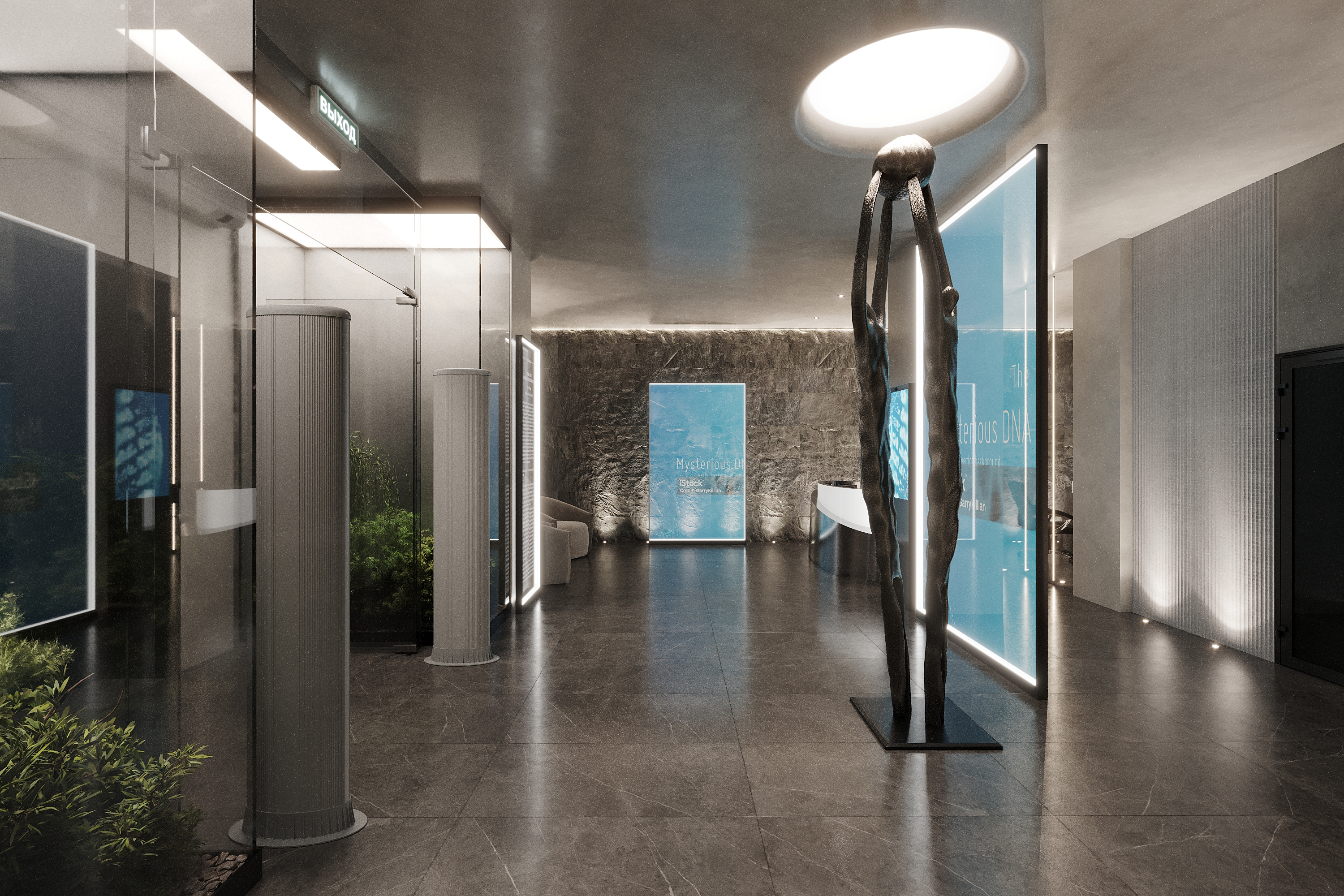 Вариант дизайна для фойе будущего музея.