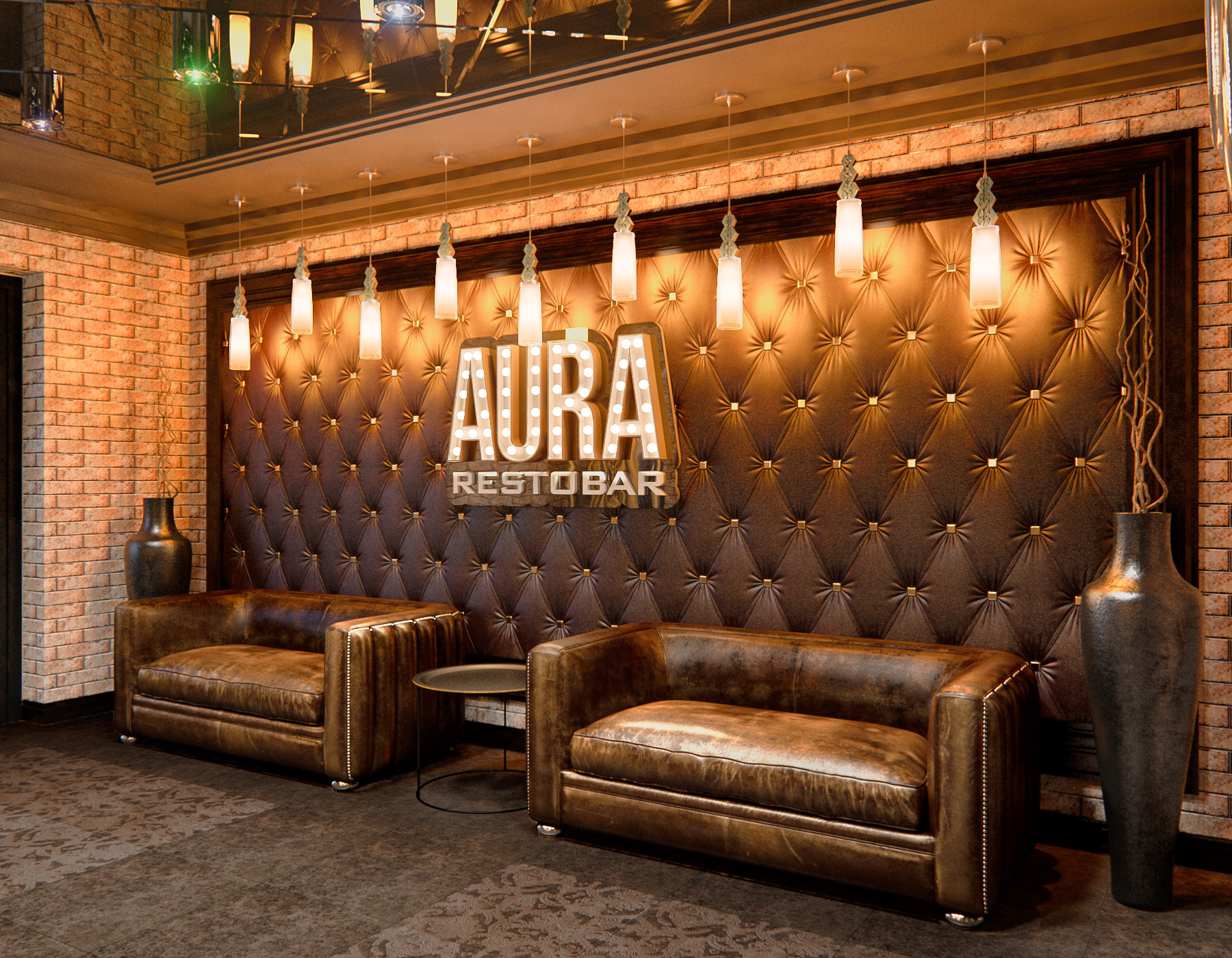 Видимо "рестобар" - используется только у нас в Казахстане ))) а кирпич конечно нужно делать объемным - эффект был бы другой