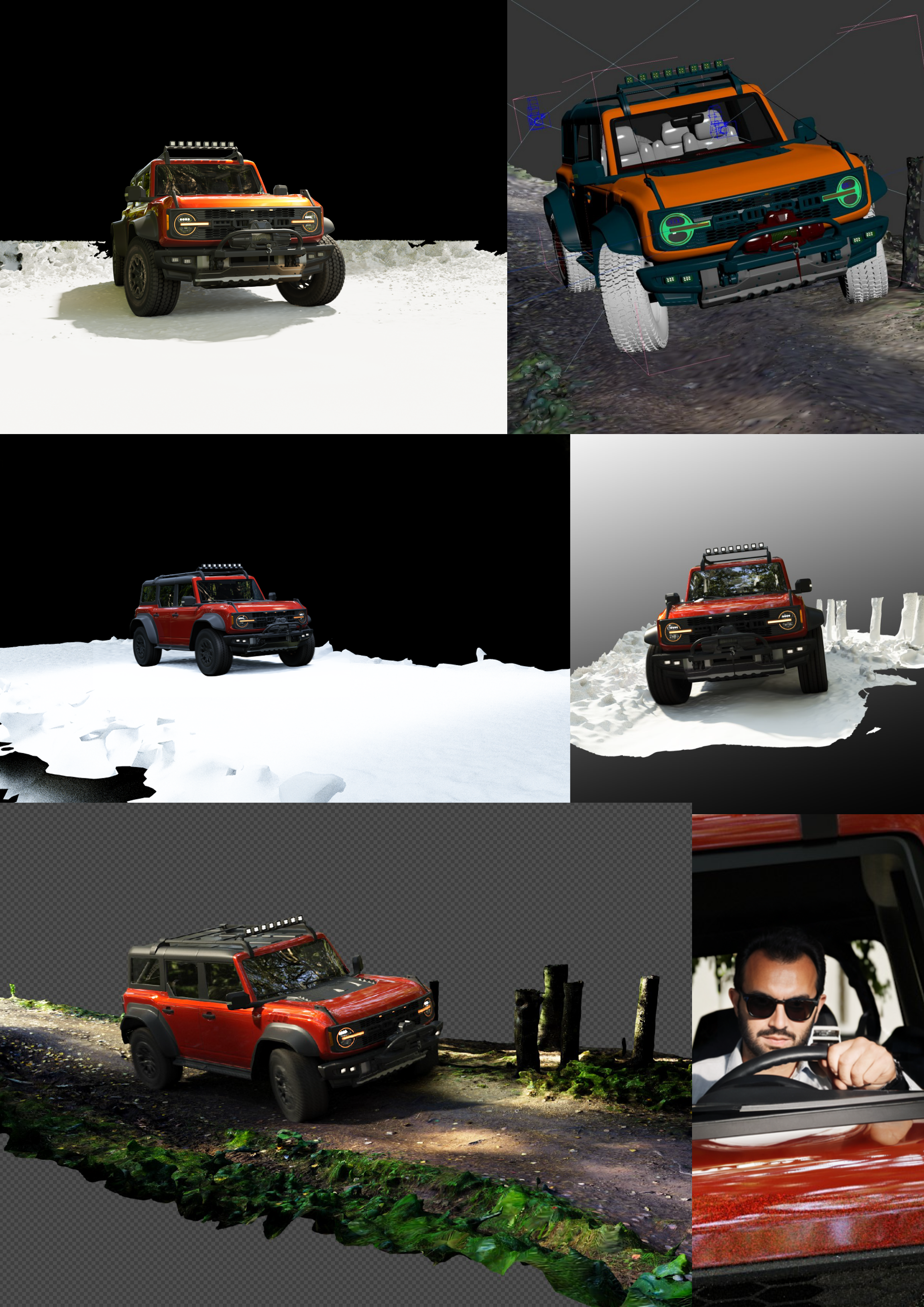I checked out the Ford Bronco 3D model; the way it blends with the scanned environment looks very natural and impressive. I just think adding a bit of dust or wear on the car would make the realism even stronger.