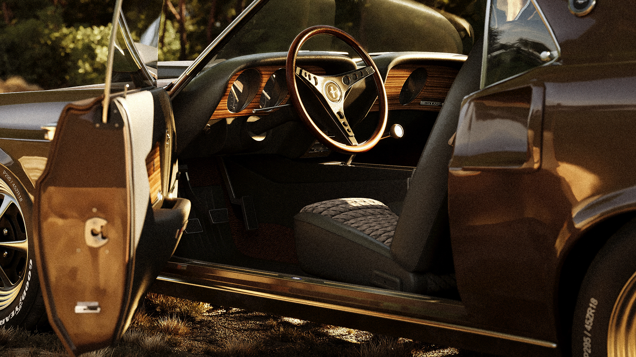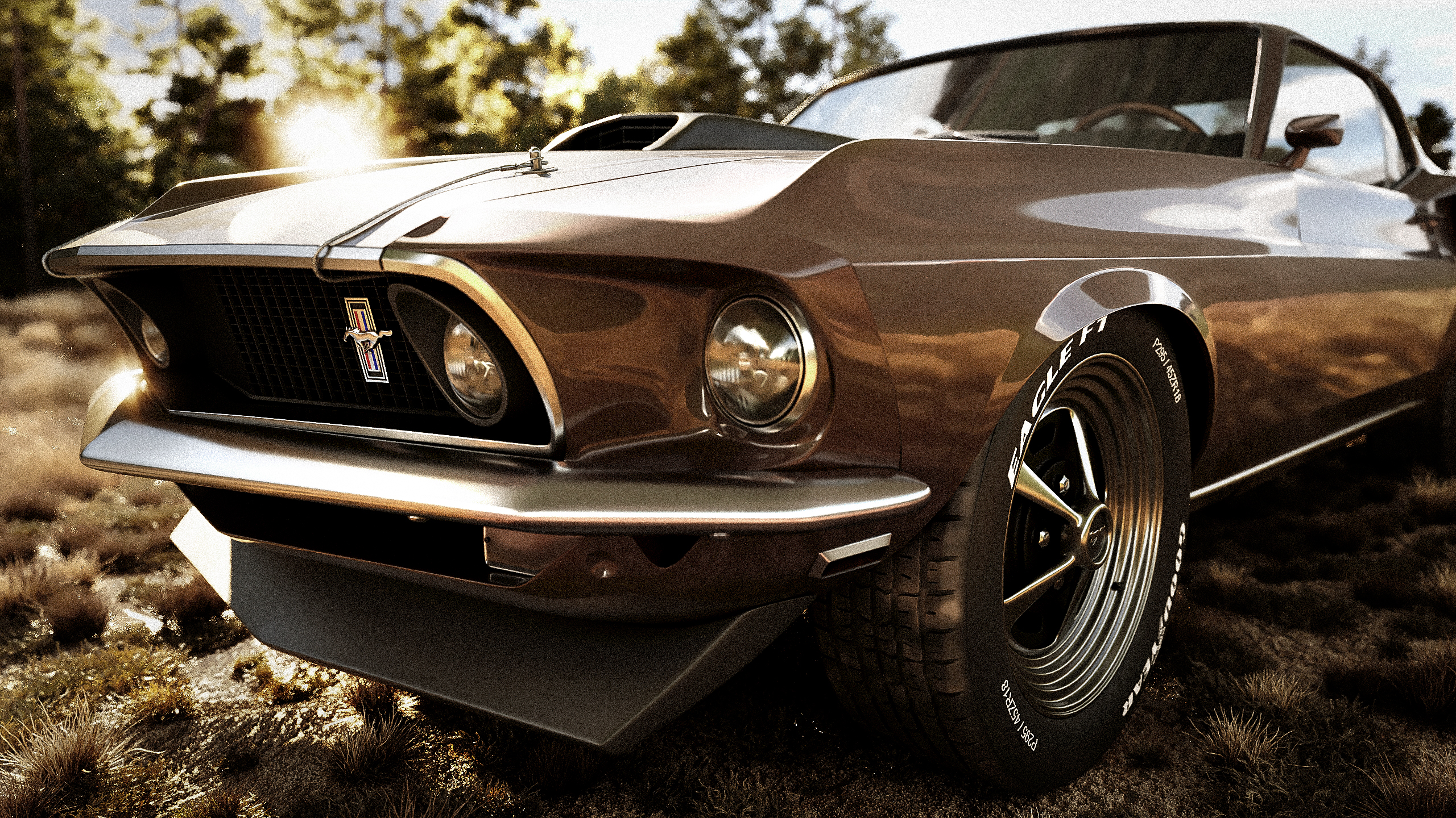 Перед нами — редкий и величественный представитель американской технофауны… Ford Mustang образца 1969 года. Подобно одинокому льву, этот хищник стоит посреди американской саванны, в царственном спокойствии вглядываясь в горизонт.